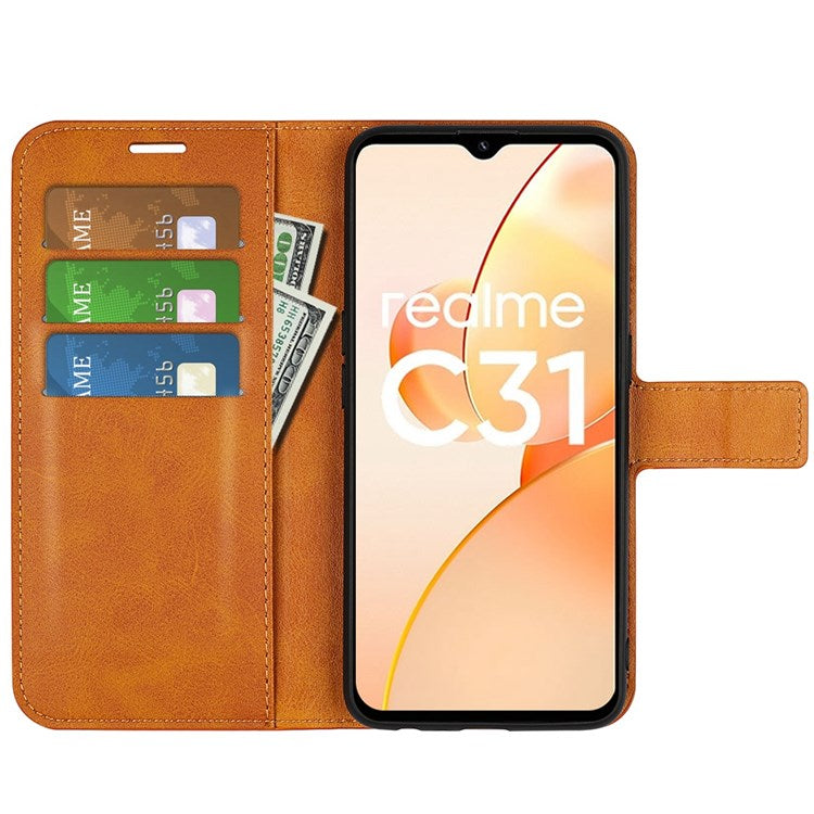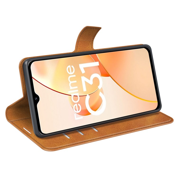 Textured PU Leather Stand Phone Case for Realme C31 4G, Square Magnetic Clasp Wallet Shell - Yellow
