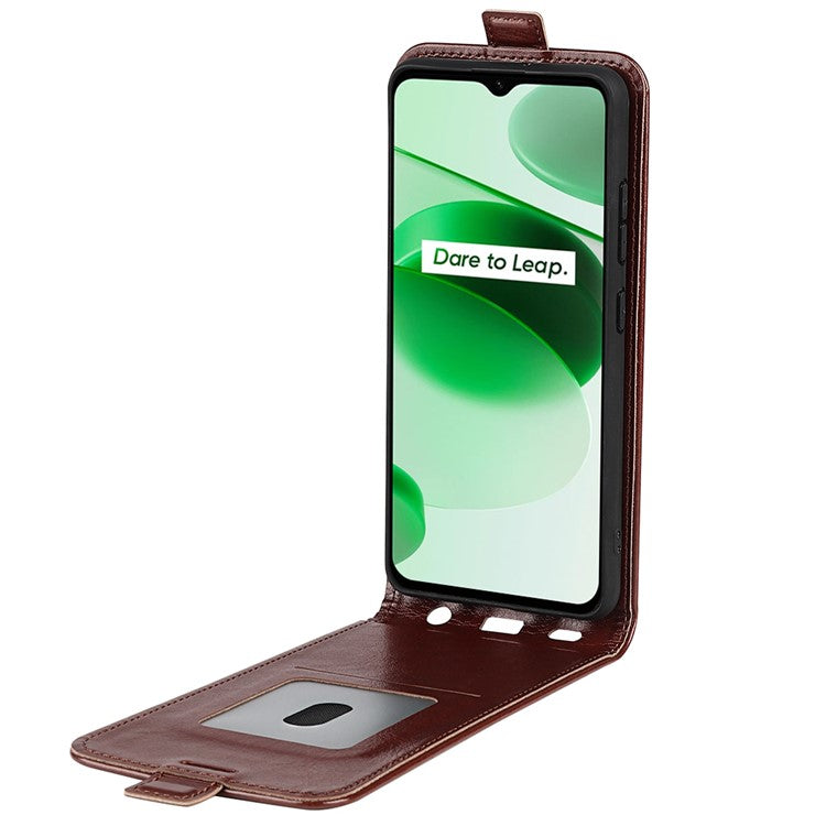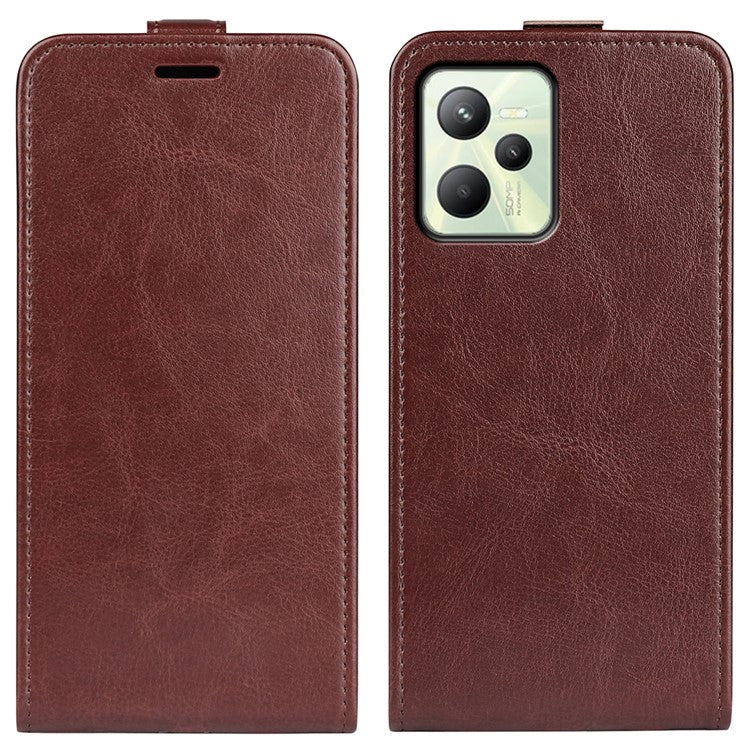 Vertical Flip Phone Case for Realme C35, Crazy Horse Texture PU Leather Cover with Card Holder - Brown