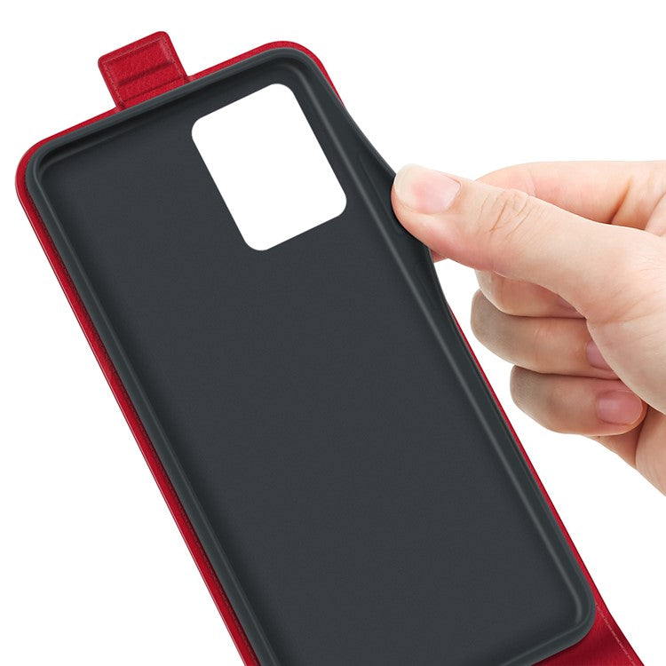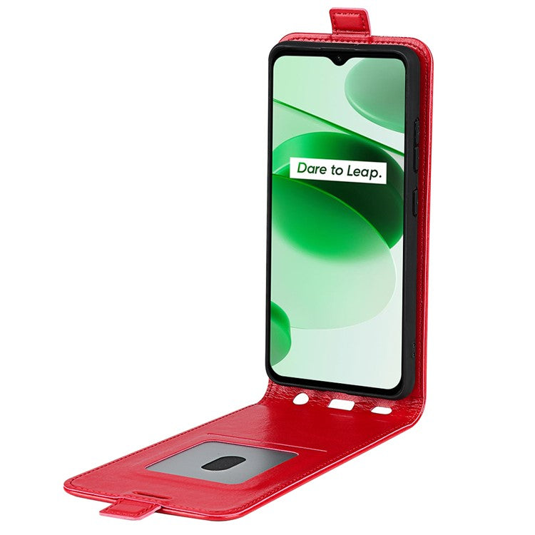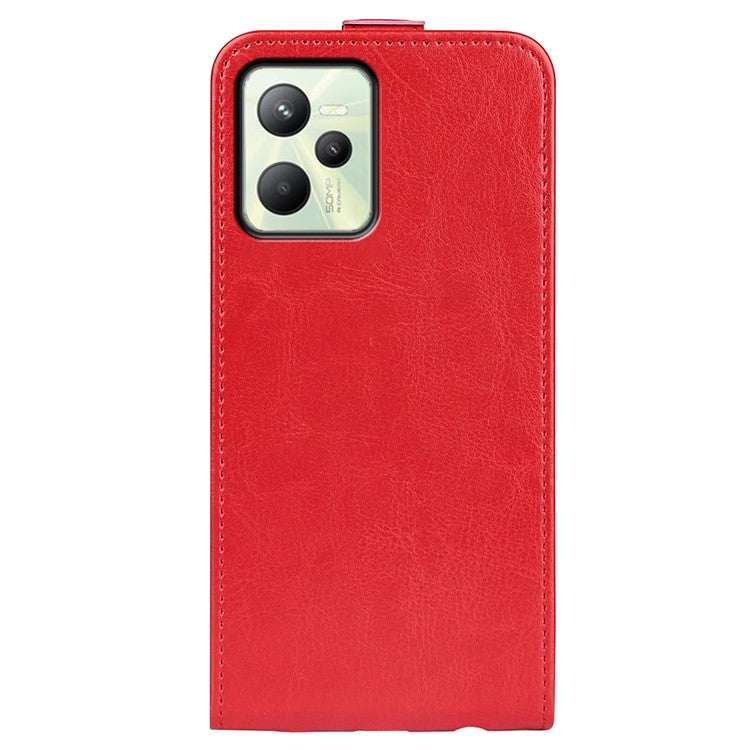 Vertical Flip Phone Case for Realme C35, Crazy Horse Texture PU Leather Cover with Card Holder - Red