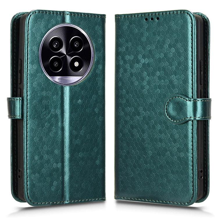 Wallet Case For Realme 14 Pro Lite 5G / 13 Pro 5G (Global) / 13 Pro+ 5G (Global) Dot Pattern Imprint PU Leather Phone Cover - Green