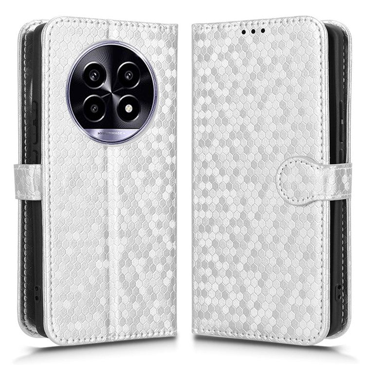 Wallet Case For Realme 14 Pro Lite 5G / 13 Pro 5G (Global) / 13 Pro+ 5G (Global) Dot Pattern Imprint PU Leather Phone Cover - Silver
