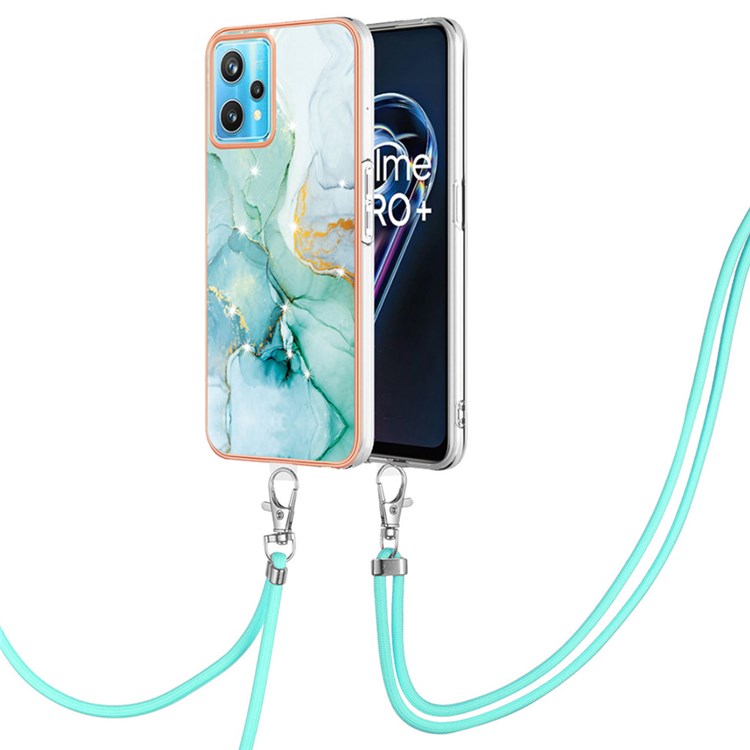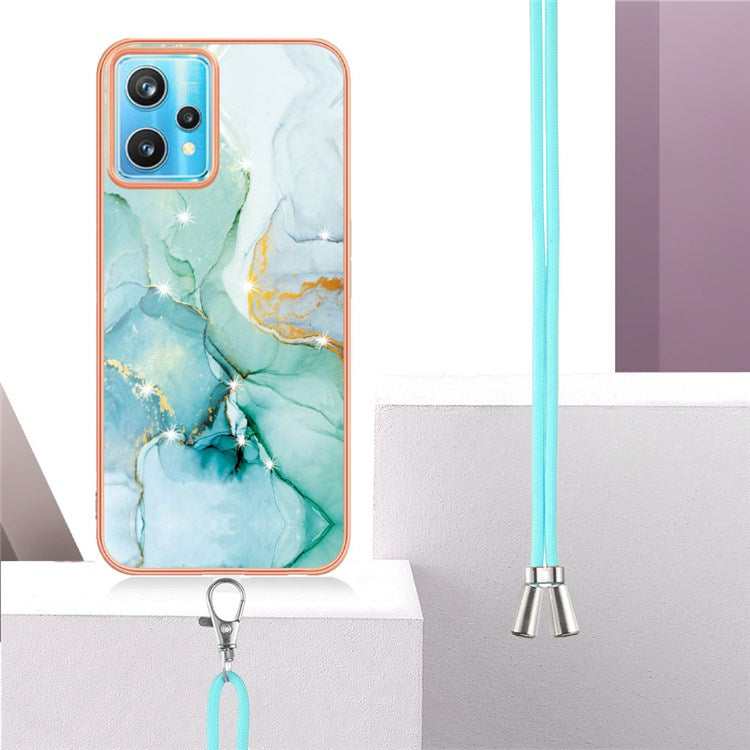 YB IMD Series-9 for Realme V25 / Realme 9 Pro 5G / 9 5G Marble Pattern IMD Soft TPU Case Electroplating Phone Shell with Lanyard - Green 003