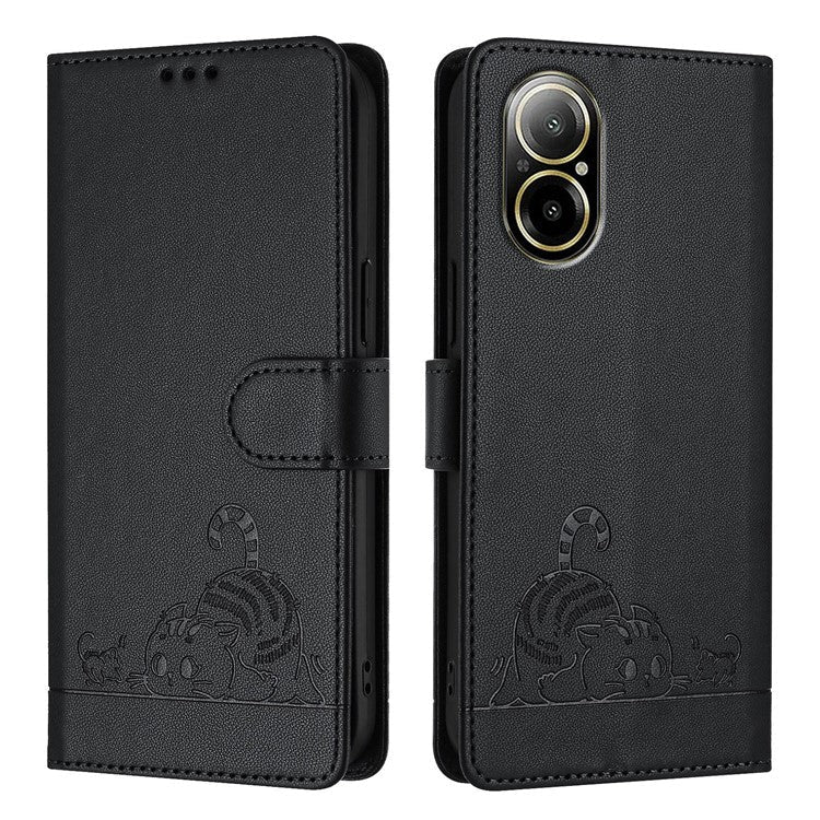 YB Imprinting Series-9 for Realme C67 4G Case PU Leather RFID Blocking Phone Cover Cat Mouse Pattern - Black