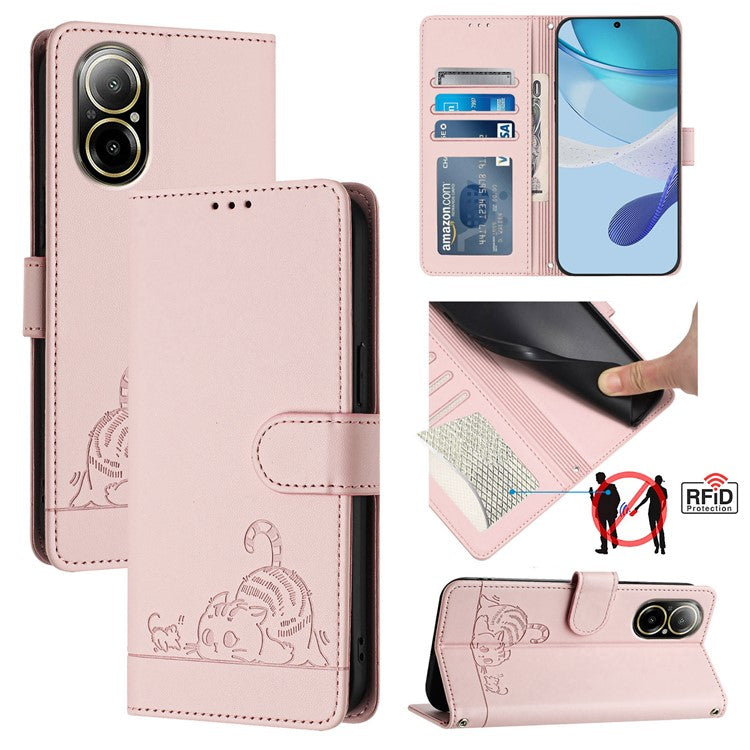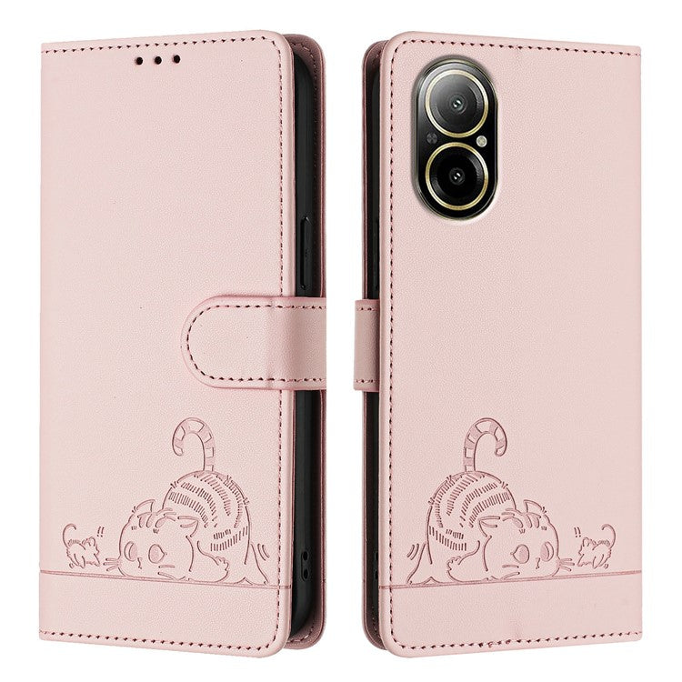 YB Imprinting Series-9 for Realme C67 4G Case PU Leather RFID Blocking Phone Cover Cat Mouse Pattern - Pink