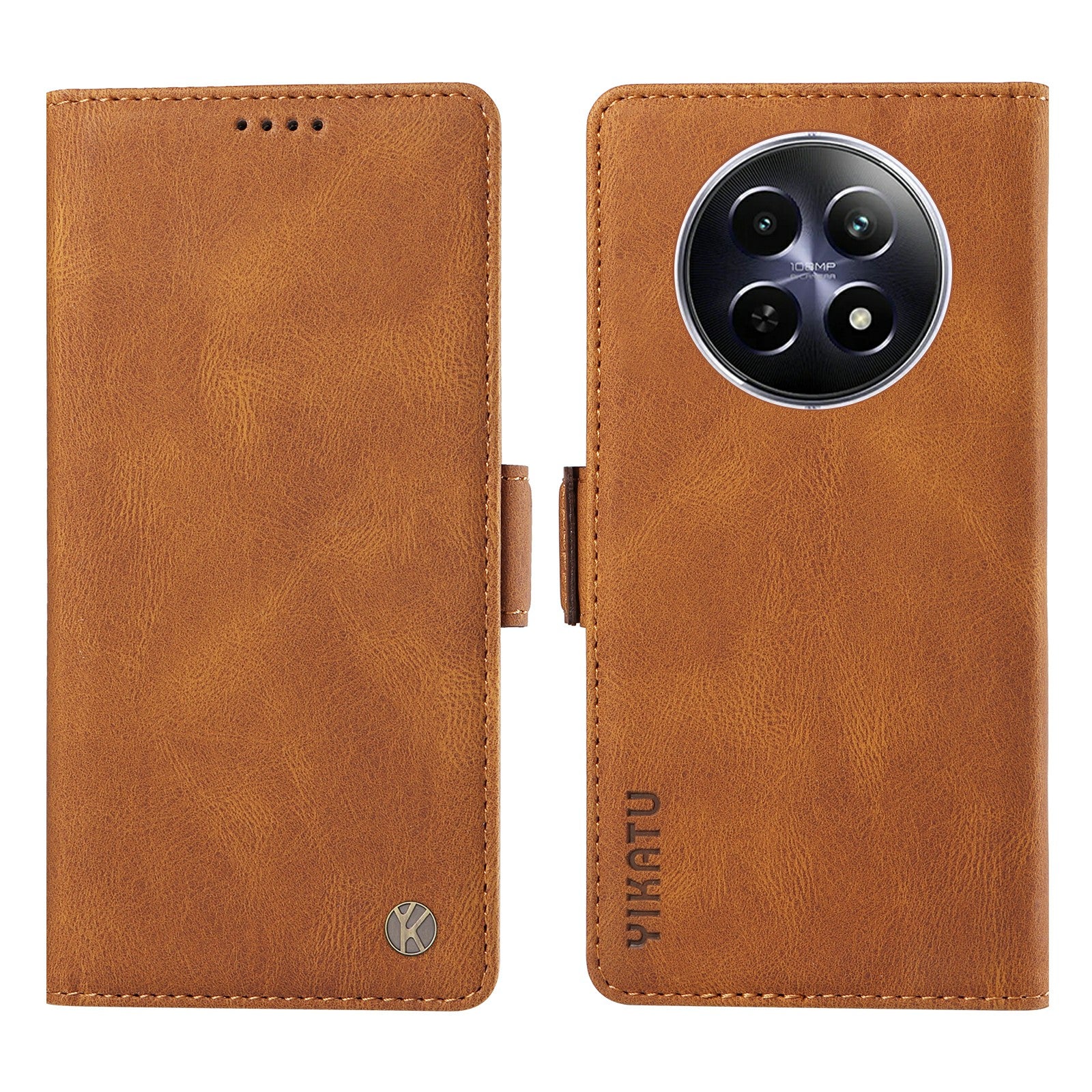 YIKATU YK-005 For Realme 12 Case PU Leather Skin-touch Wallet Flip Phone Cover - Brown