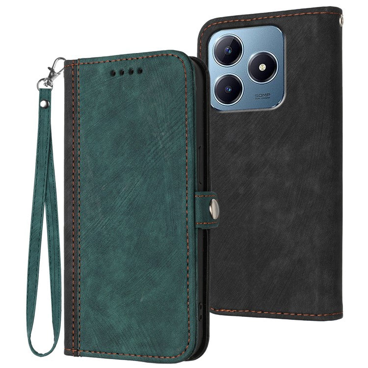 YX0020 For Realme C63 4G Case Leather Phone Cover Wallet Card Slots - Blackish Green