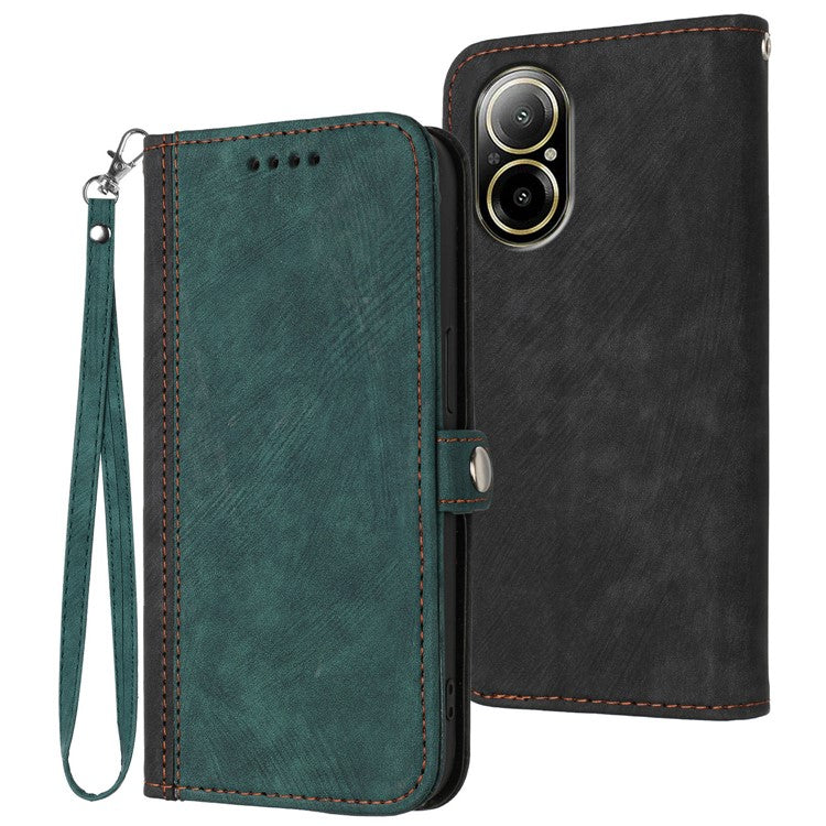 YX0020 For Realme C67 4G Case Wallet Skin-touch PU Leather Stand Phone Cover - Blackish Green