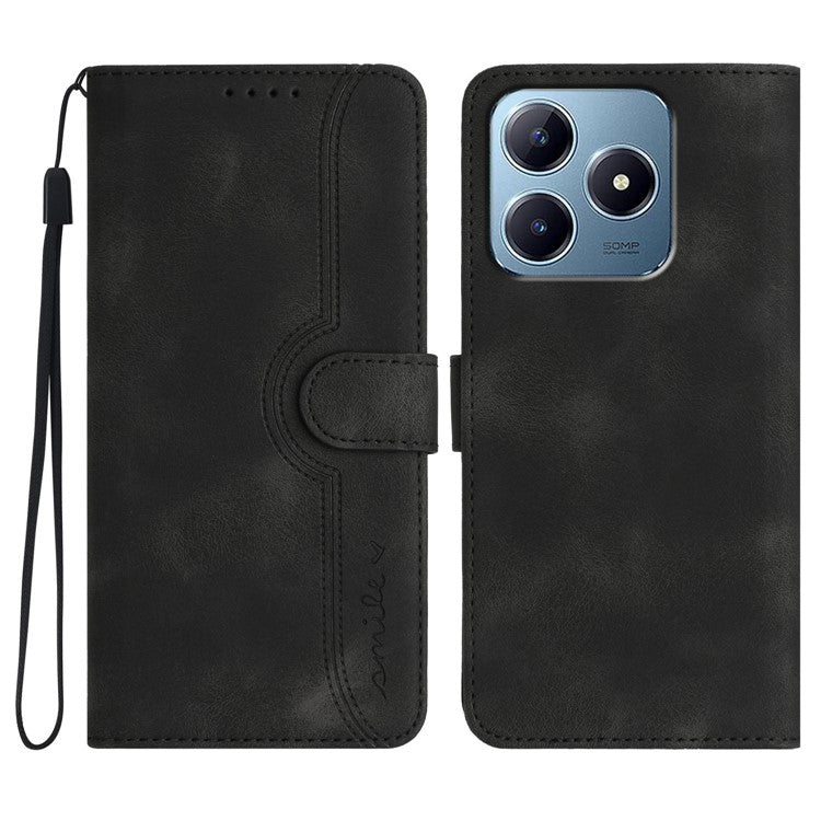 YX0030 For Realme C63 4G Case Smile Imprinted Leather Phone Cover Magnetic Clasp - Black
