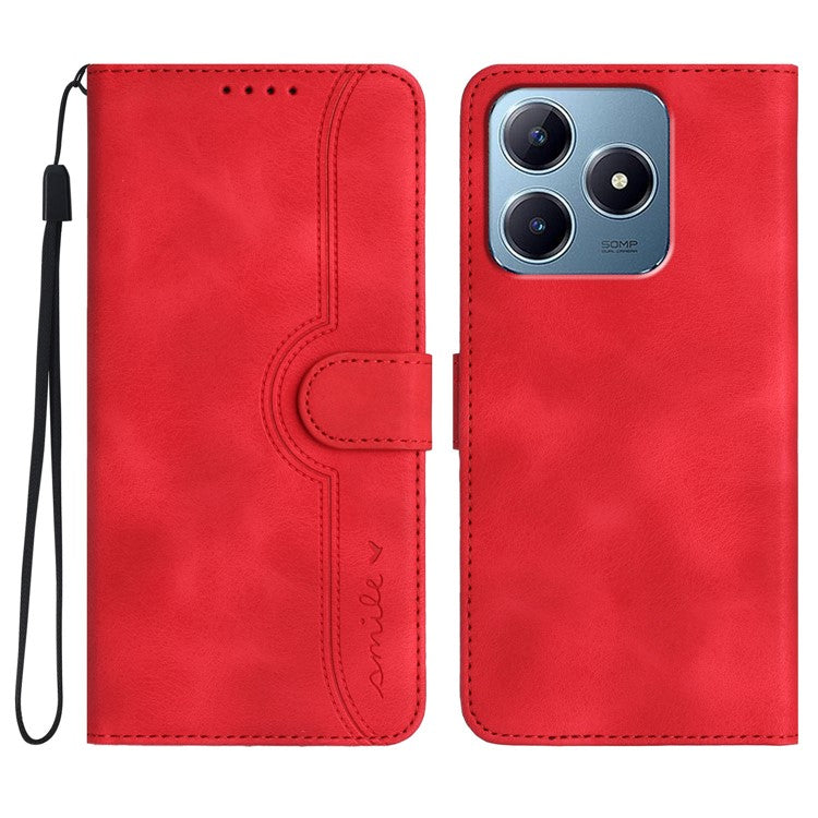 YX0030 For Realme C63 4G Case Smile Imprinted Leather Phone Cover Magnetic Clasp - Red