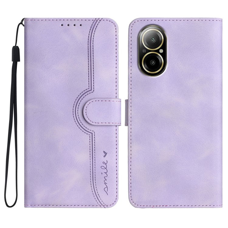 YX0030 For Realme C67 4G Wallet Case PU Leather Phone Cover Smile Imprinted - Light Purple