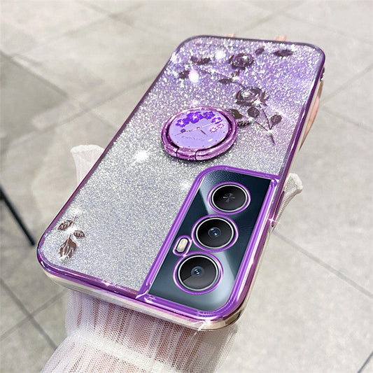 KADEM For Realme C65 4G Case TPU Gradient Flowers Mobile Phone Cover Anti-Drop Kickstand - Rose Gold