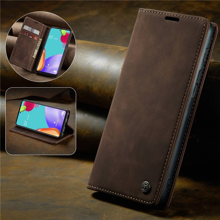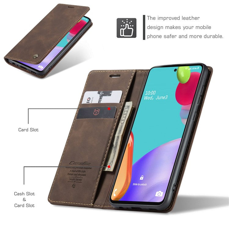 CASEME 013 Series Auto-absorbed Leather Wallet Stand Case Shell for Samsung Galaxy A52 5G/4G / A52s 5G - Coffee
