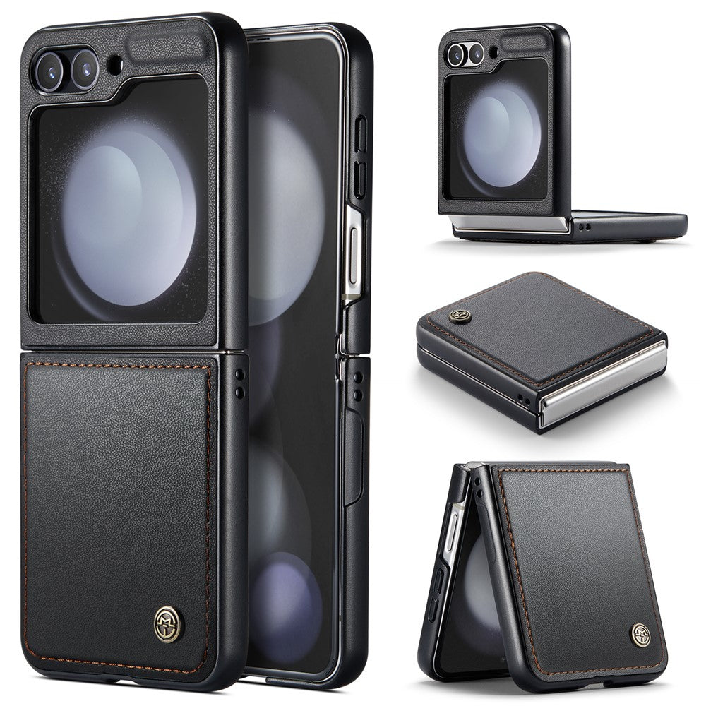 CASEME 023 Series For Samsung Galaxy Z Flip7 FE 5G / Z Flip6 5G Case Litchi Texture Leather+PC Phone Cover - Black