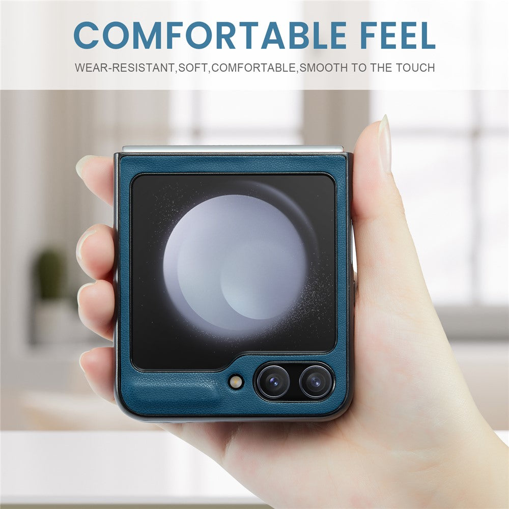 CASEME 023 Series For Samsung Galaxy Z Flip7 FE 5G / Z Flip6 5G Case Litchi Texture Leather+PC Phone Cover - Blue