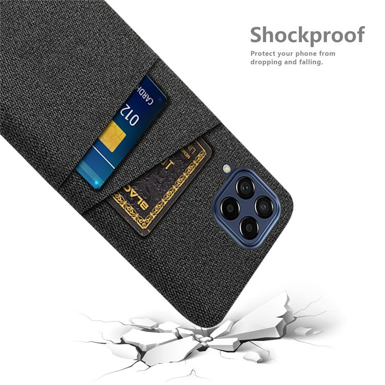Cloth Texture Protective Case for Samsung Galaxy M53 5G, Hard PC + Cloth Back Cover with Dual Card Slot - Black
