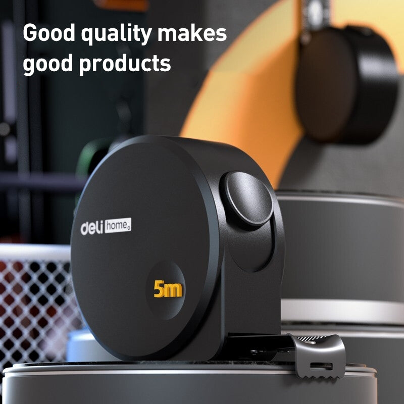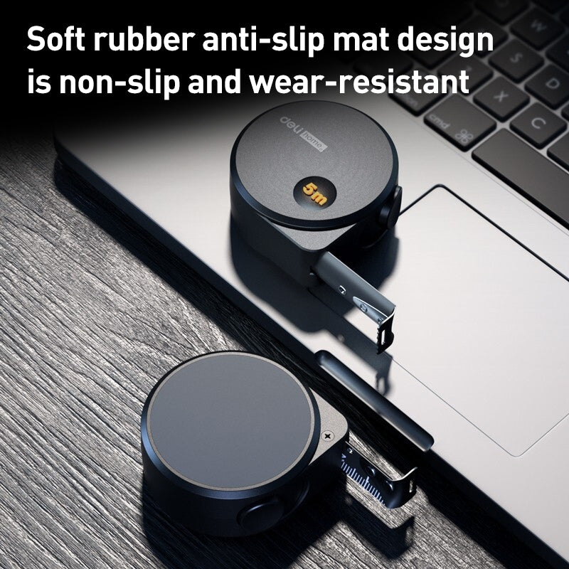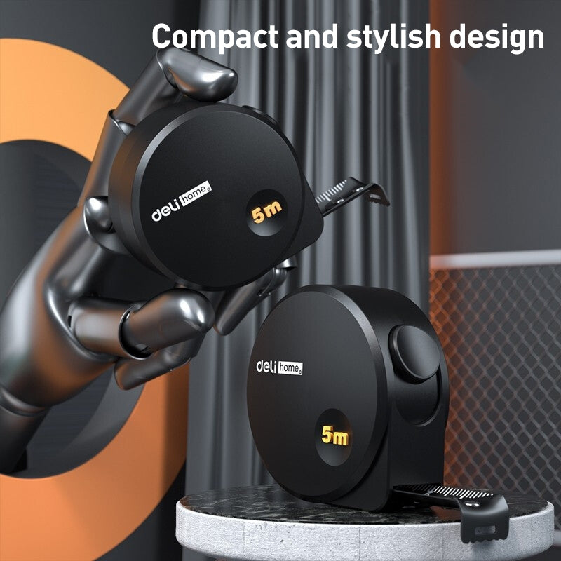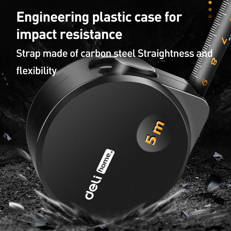 DELI High Precision Self-Locking Measuring Tape Household Woodworking Plumber Steel Ruler - Black / 5m