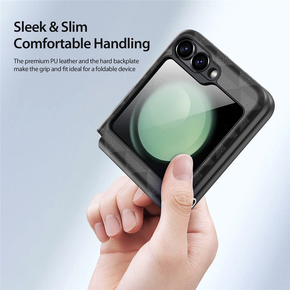 DUX DUCIS Fitt Series for Samsung Galaxy Z Flip7 FE 5G / Z Flip6 5G Case Rhombus Leather+TPU Phone Cover - Black