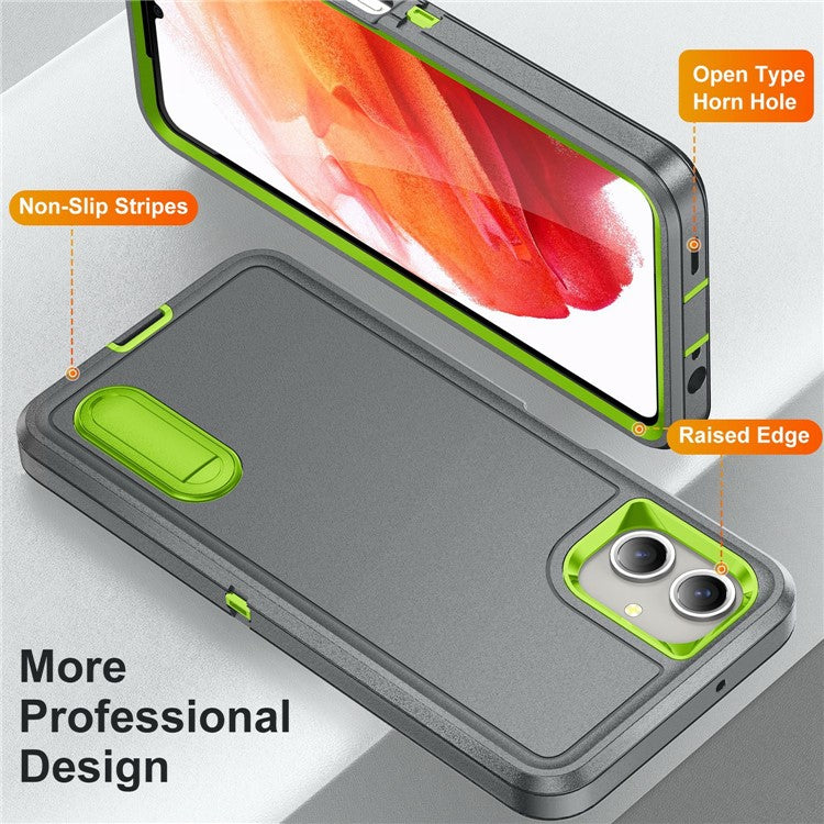 For Samsung Galaxy A06 Case Kickstand Phone Cover PC+Silicone+EVA 3-in-1 Design - Grey+Green