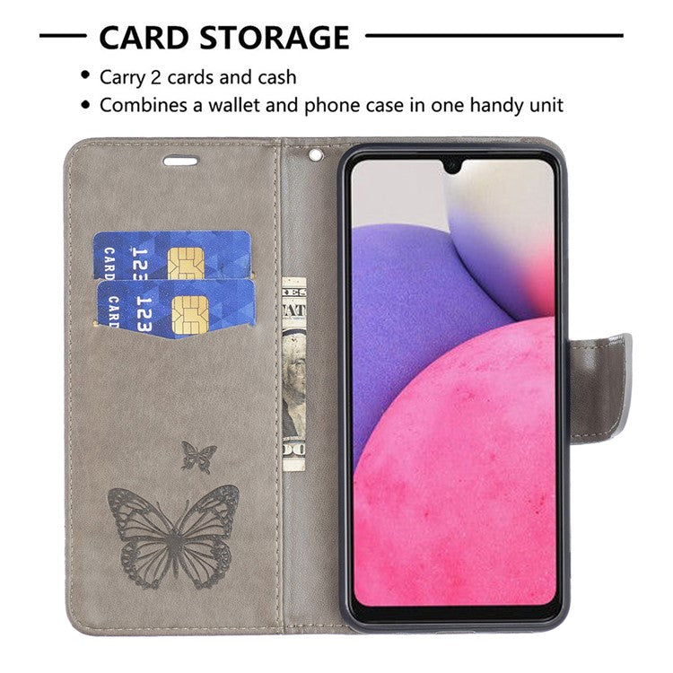 For Samsung Galaxy A33 5G Drop-proof Protection Multiple Butterfly Imprinted PU Leather Flip Folio Cover Wallet Stand Case - Grey