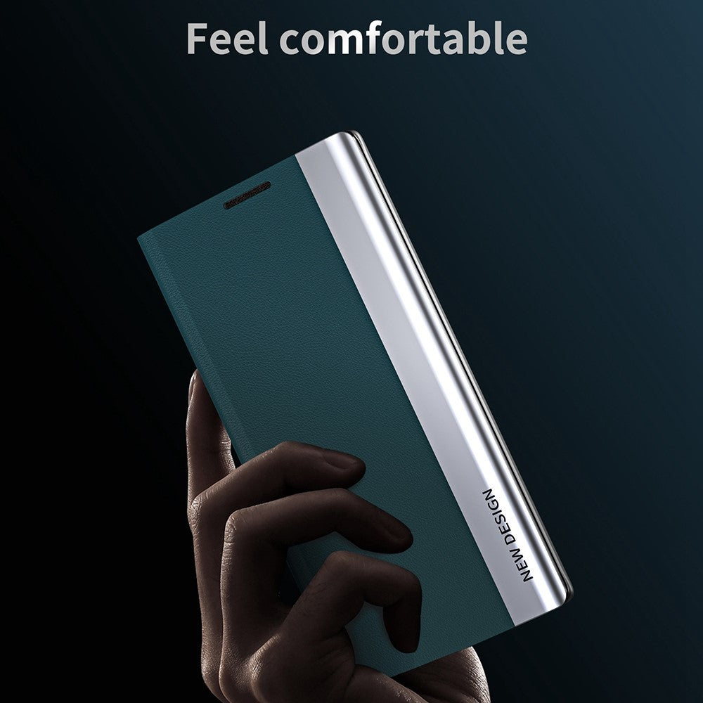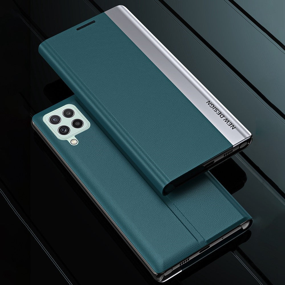 For Samsung Galaxy M33 5G (Global Version) Electroplating PU Leather Stand Case Auto Absorption All-round Protection Phone Cover - Pink