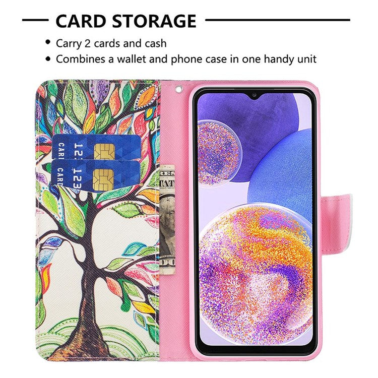 For Samsung Galaxy M53 5G Phone Case Pattern Printing PU Leather Wallet Stand Cover - Life Tree