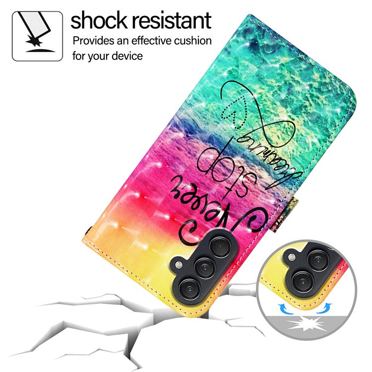 For Samsung Galaxy M55 5G / C55 5G / F55 5G Leather Case Pattern Printing Wallet Stand Mobile Cover with Strap - Never Stop Dreaming