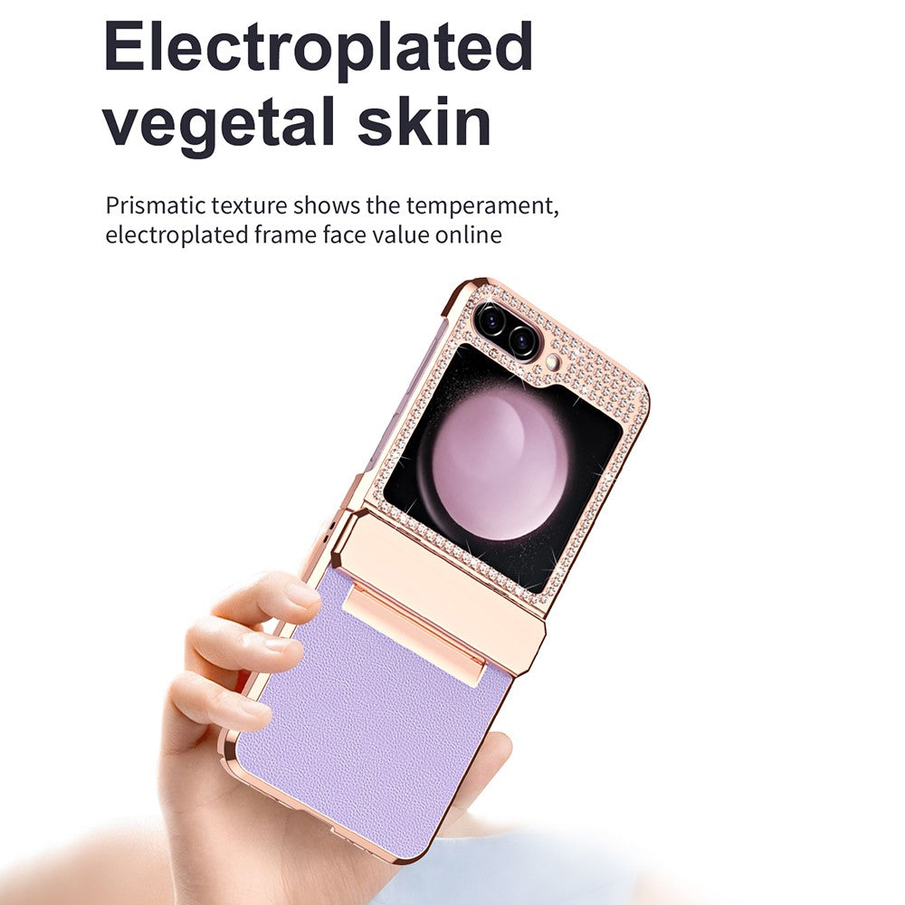 For Samsung Galaxy Z Flip7 FE 5G  /  Flip6 5G Case Rhinestone Decoration Electroplating PU Leather + PC Phone Cover - Purple