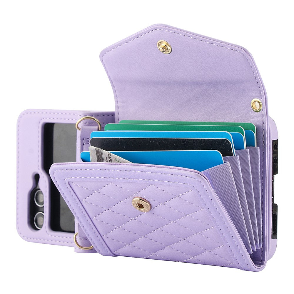 For Samsung Galaxy Z Flip7 FE 5G / Z Flip6 5G Case Card Holders PU Leather+PC Phone Cover with Detachable Shoulder Strap - Purple