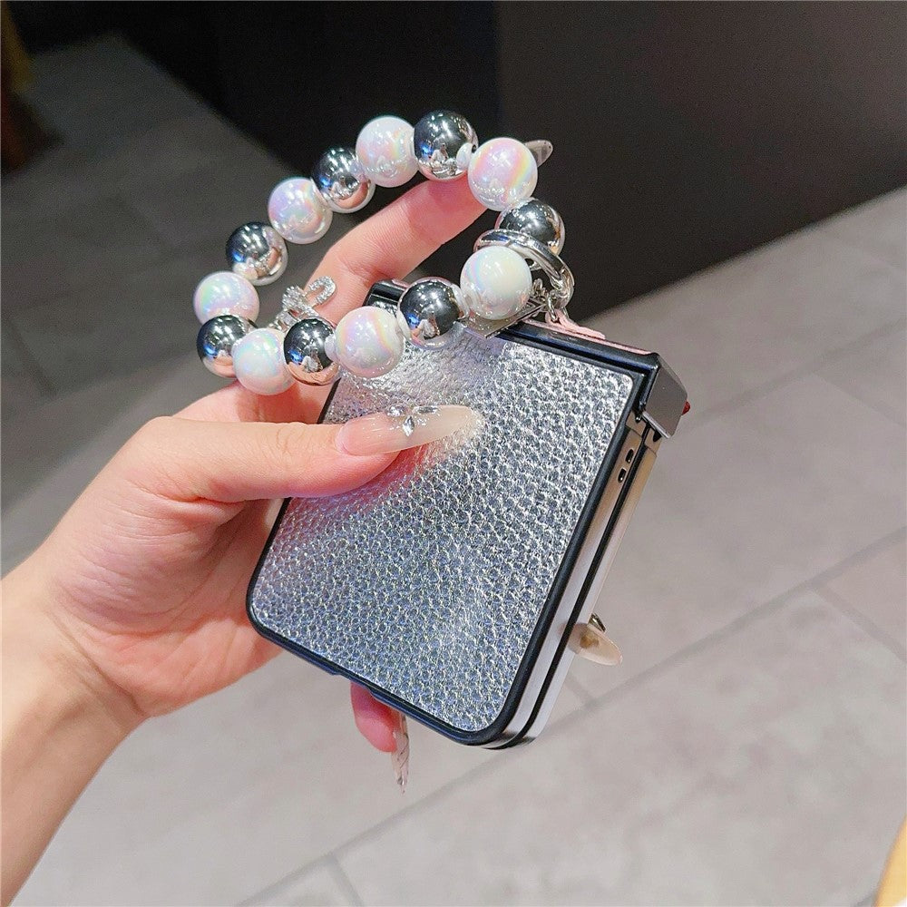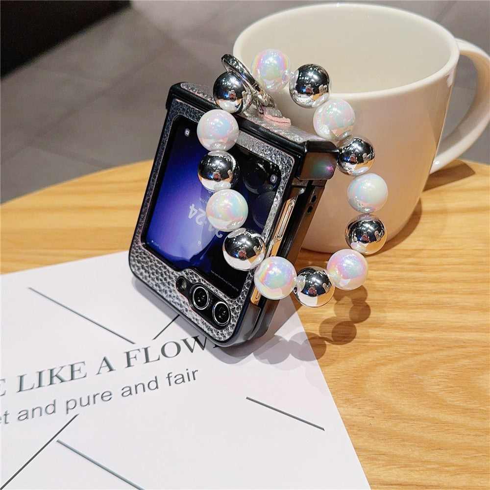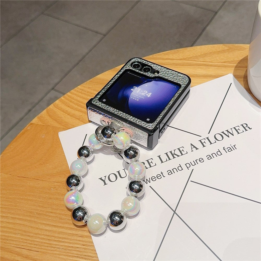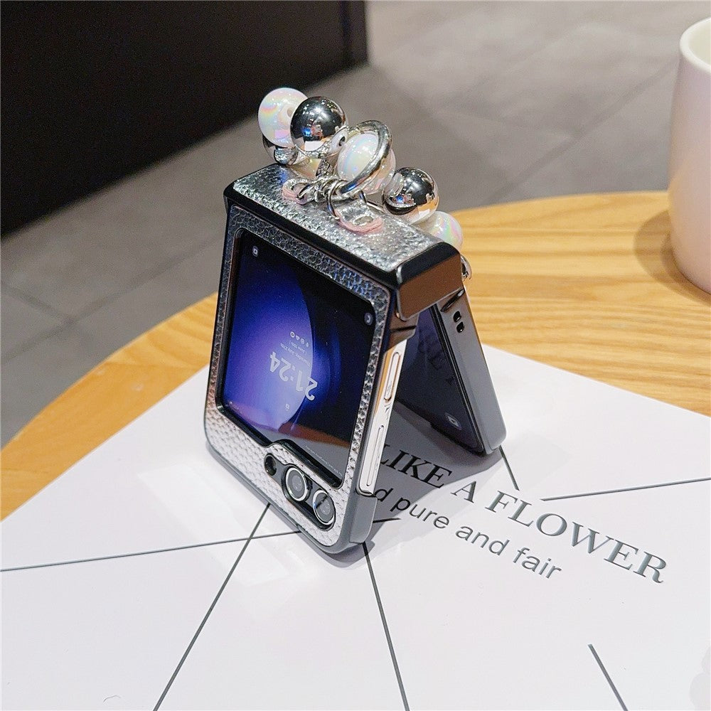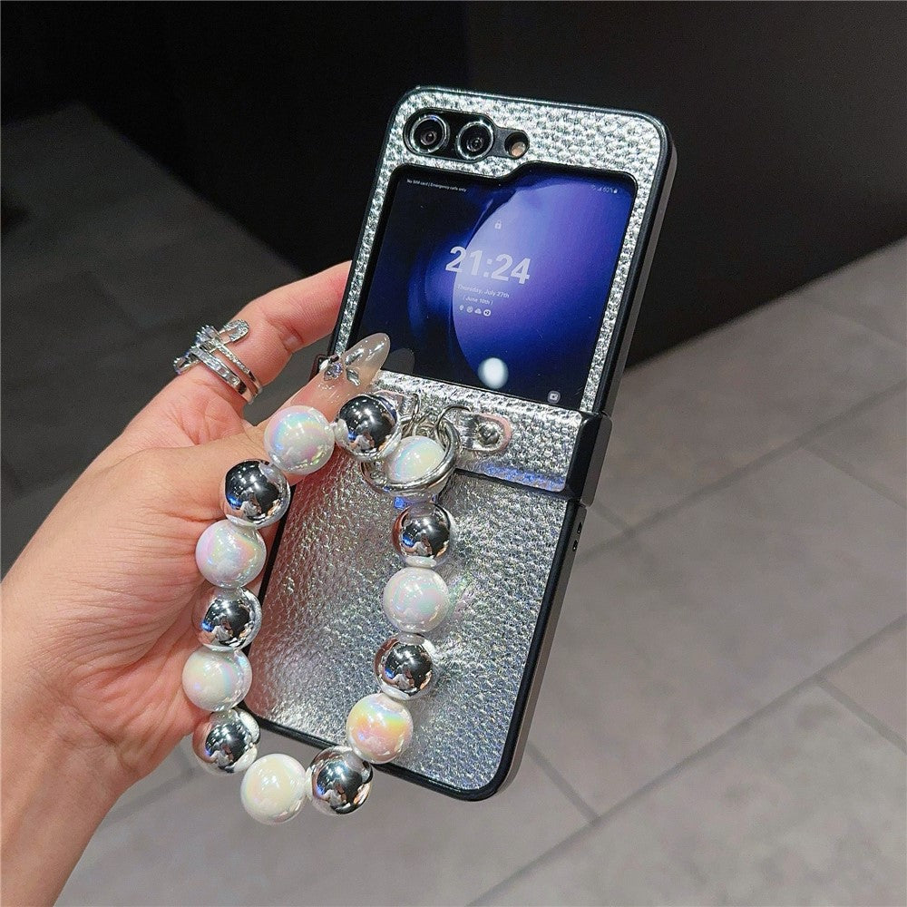 For Samsung Galaxy Z Flip7 FE 5G / Z Flip6 5G Case Hinge Protection Leather Coated Phone Cover with Bead Chain