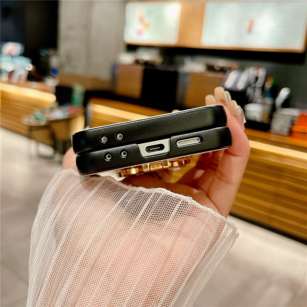 For Samsung Galaxy Z Flip7 FE 5G / Z Flip6 5G Case Kickstand TPU+PC Rhinestones Decor Phone Cover - White
