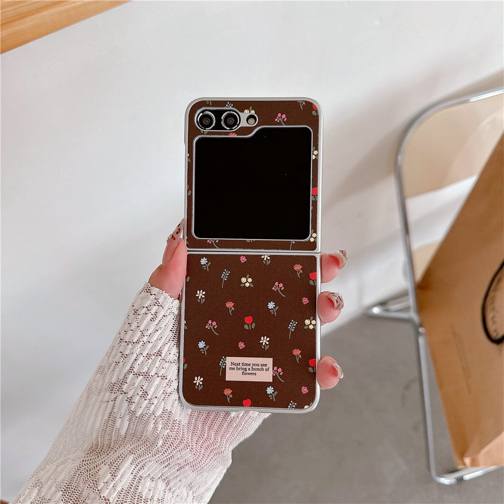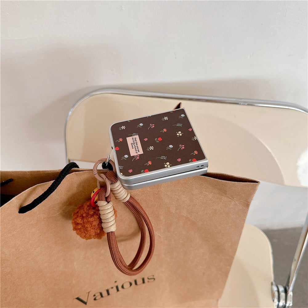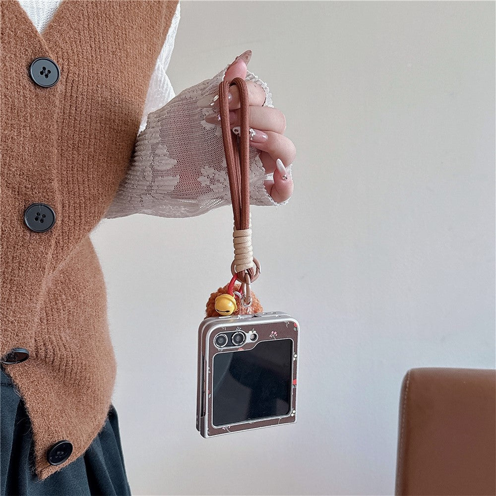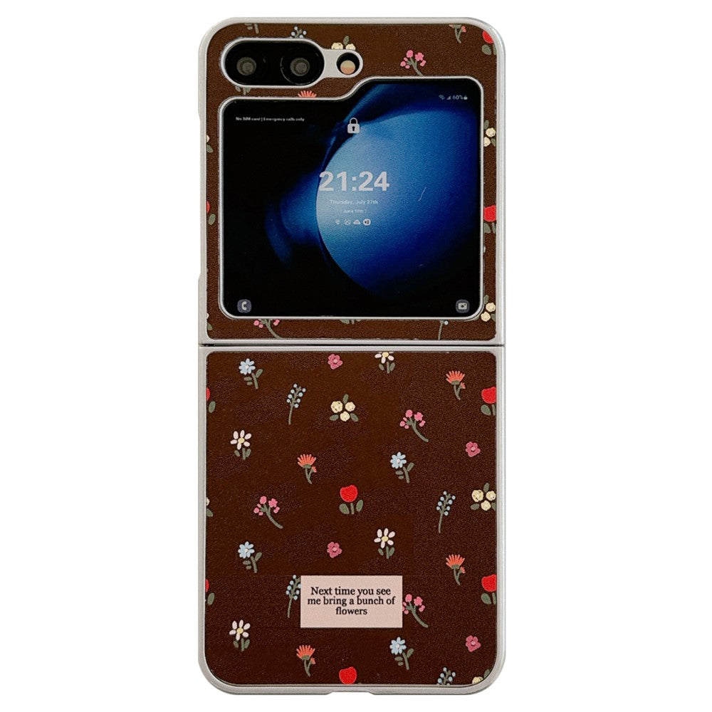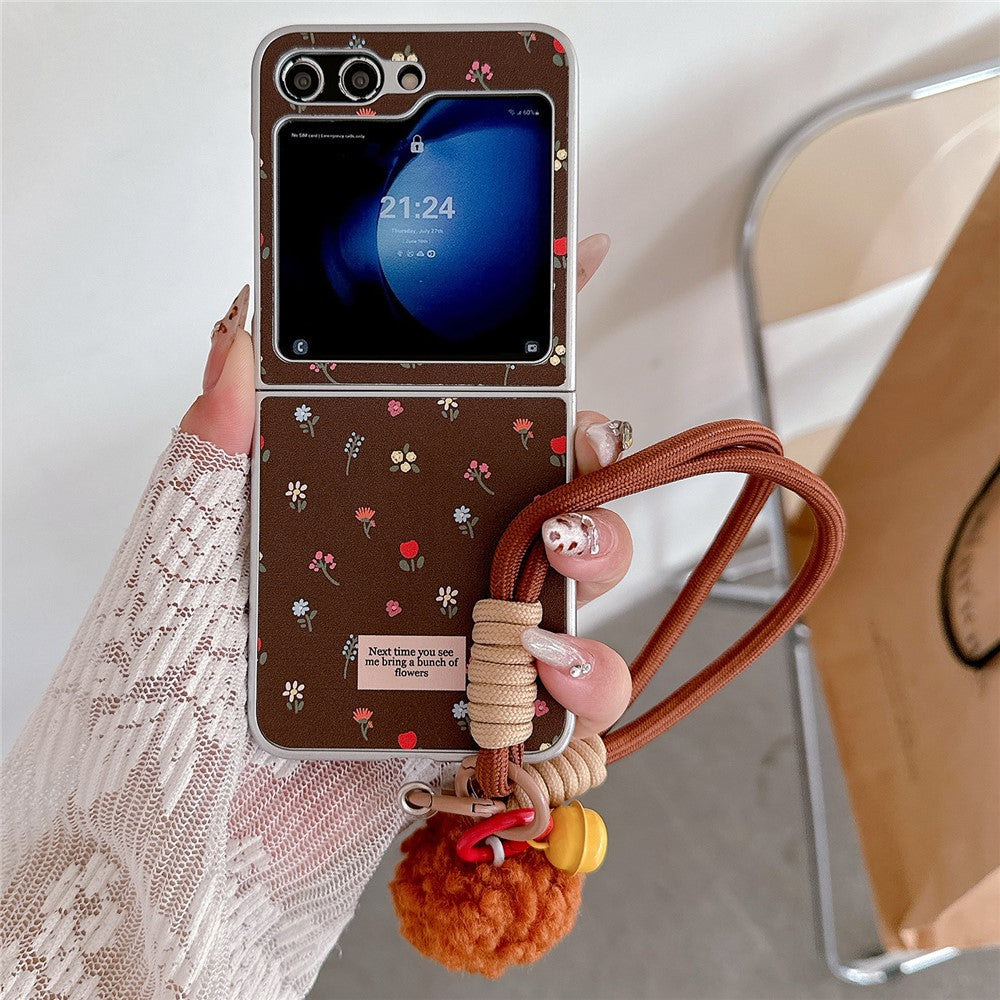 For Samsung Galaxy Z Flip7 FE 5G / Z Flip6 5G Case Leather+PC Floral Phone Cover with Hand Strap - Brown