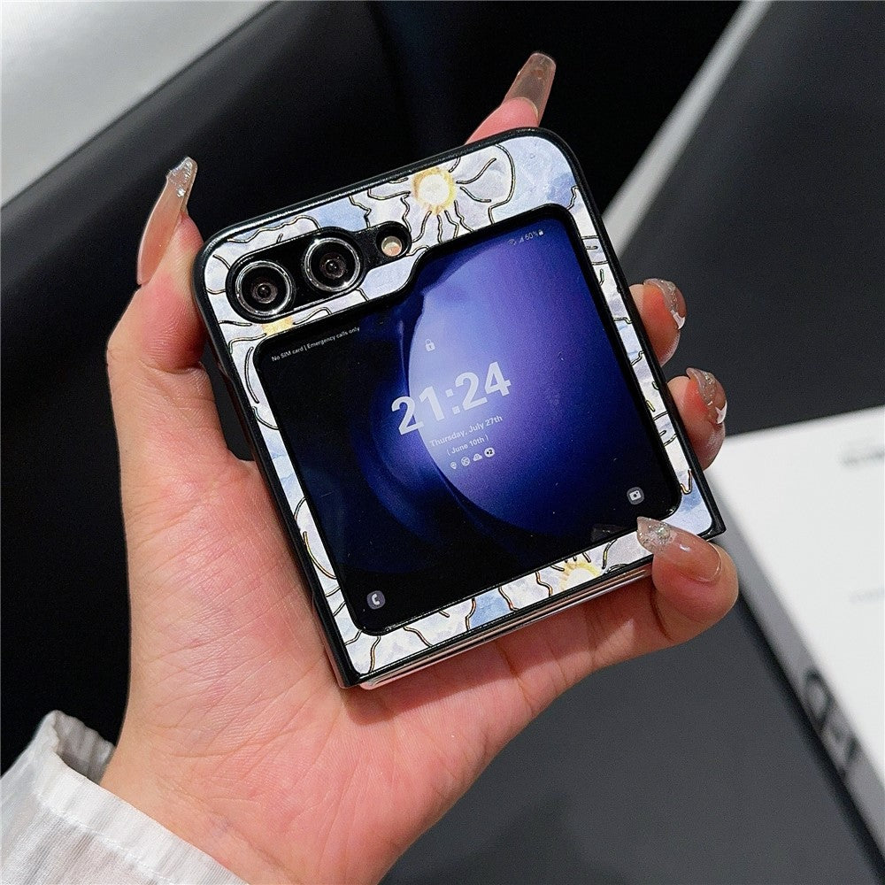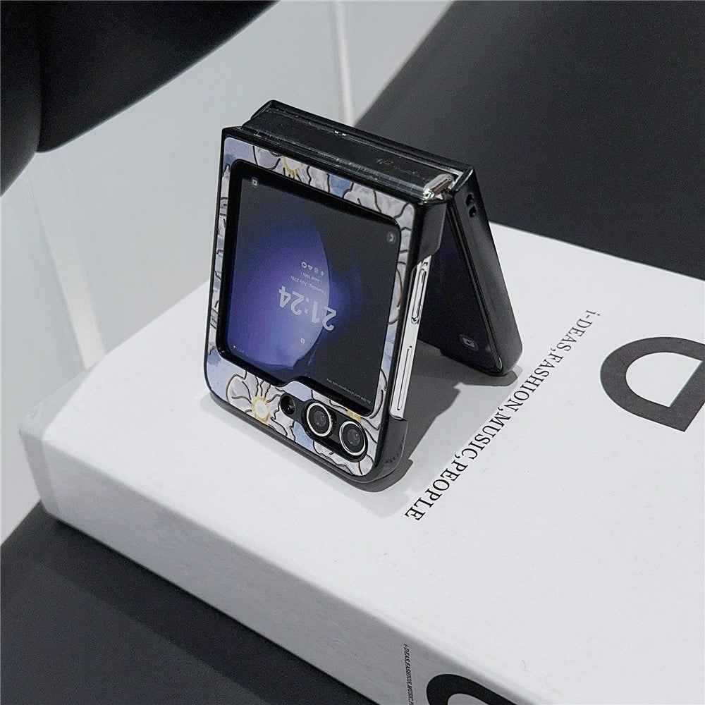 For Samsung Galaxy Z Flip7 FE 5G / Z Flip6 5G Case Leather + PC Protective Phone Cover Lacquered Pattern - Flowers