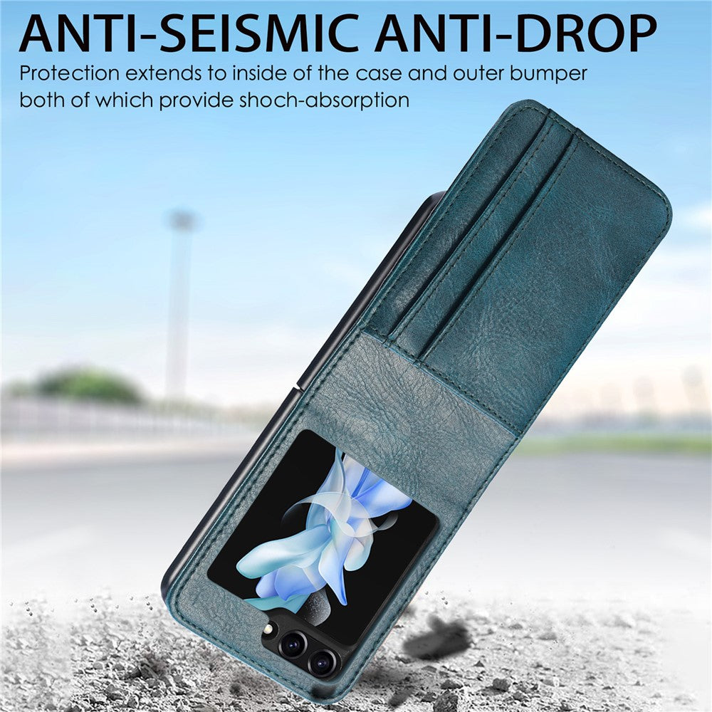 For Samsung Galaxy Z Flip7 FE 5G / Z Flip6 5G Case Leather Phone Cover Card Slots Photo Frame Slot - Green