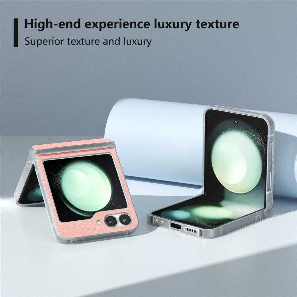 For Samsung Galaxy Z Flip7 FE 5G / Z Flip6 5G Case Matte Edge PU Leather Coated PC Hinge Protection Cover - Pink