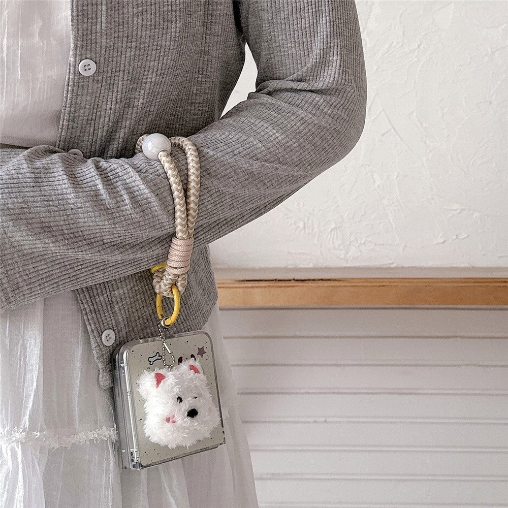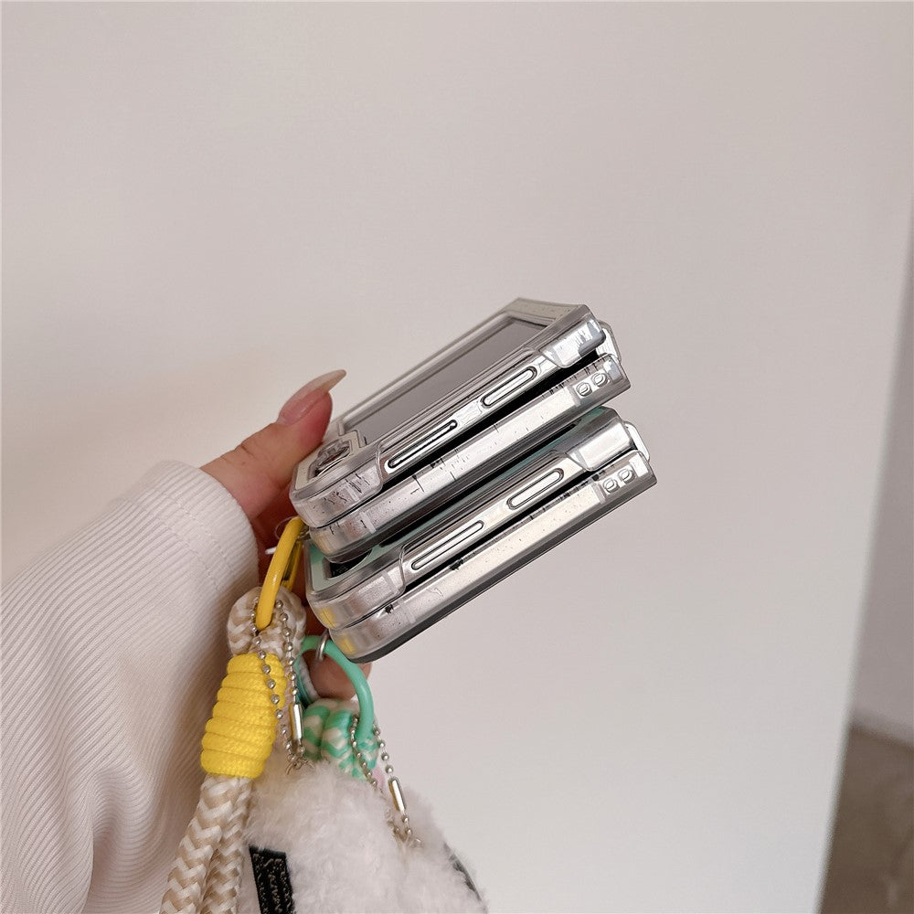 For Samsung Galaxy Z Flip7 FE 5G / Z Flip6 5G Case Mirror Surface Protective Hard PC Phone Cover with Wrist Strap - Beige