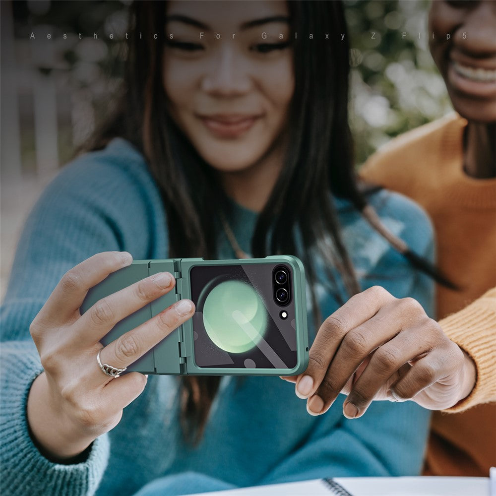 For Samsung Galaxy Z Flip7 FE 5G / Z Flip6 5G / Z Flip5 5G Case Hard PC Non-Slip Phone Cover with Tempered Glass Film - Green