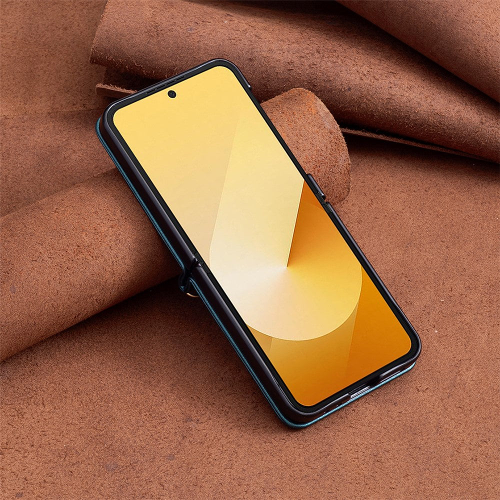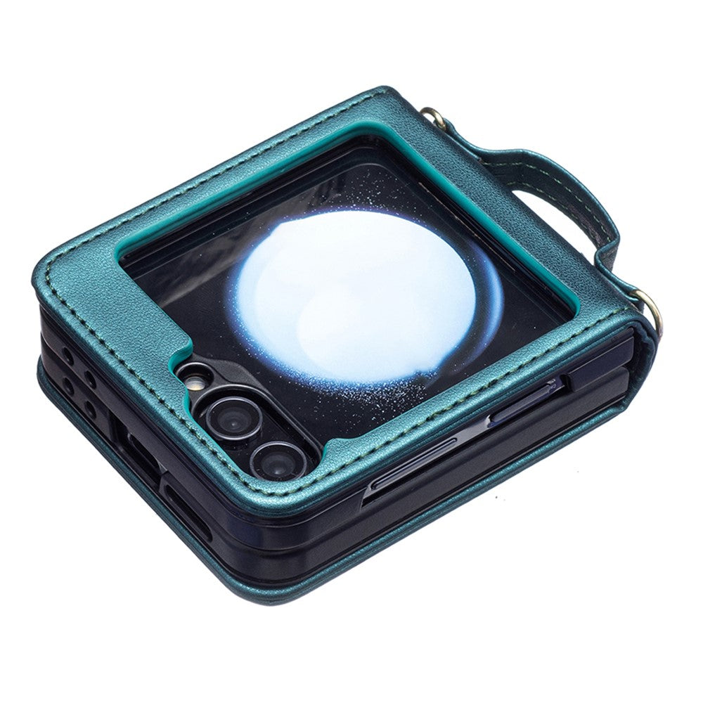 For Samsung Galaxy Z Flip7 FE 5G / Z Flip6 5G / Z Flip5 5G Leather Back Case Rhombus Phone Cover with Shoulder Strap - Green