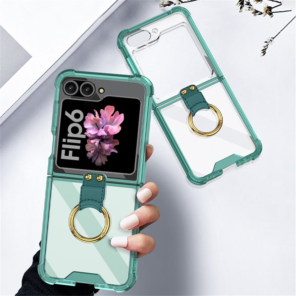 GKK For Samsung Galaxy Z Flip7 FE 5G / Z Flip6 5G Case Ring Holder Kickstand TPU Phone Cover - Transparent Green