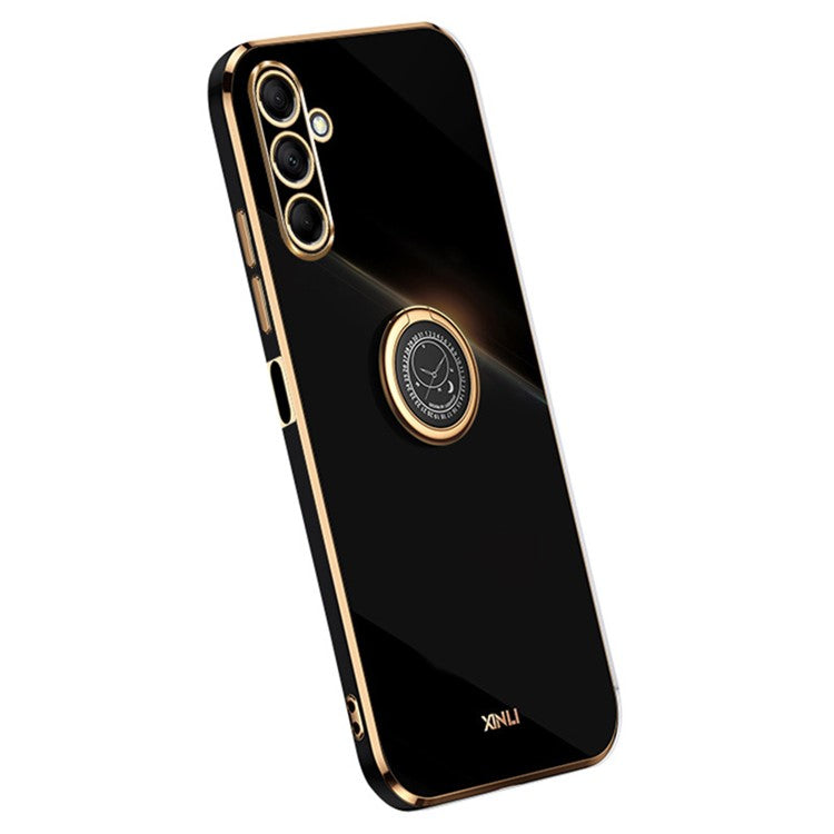 XINLI For Samsung Galaxy M15 5G / F15 5G Case Electroplating Soft TPU Kickstand Phone Cover - Black