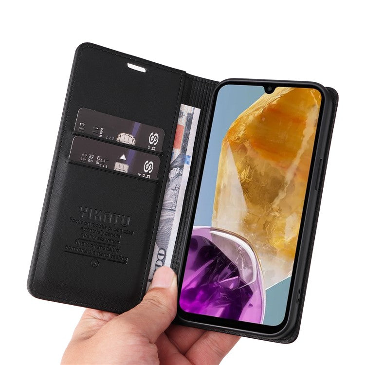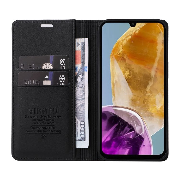 YIKATU YK-001 For Samsung Galaxy M15 5G Phone Cover Magnetic Closure Leather Shock Absorbing Case - Black