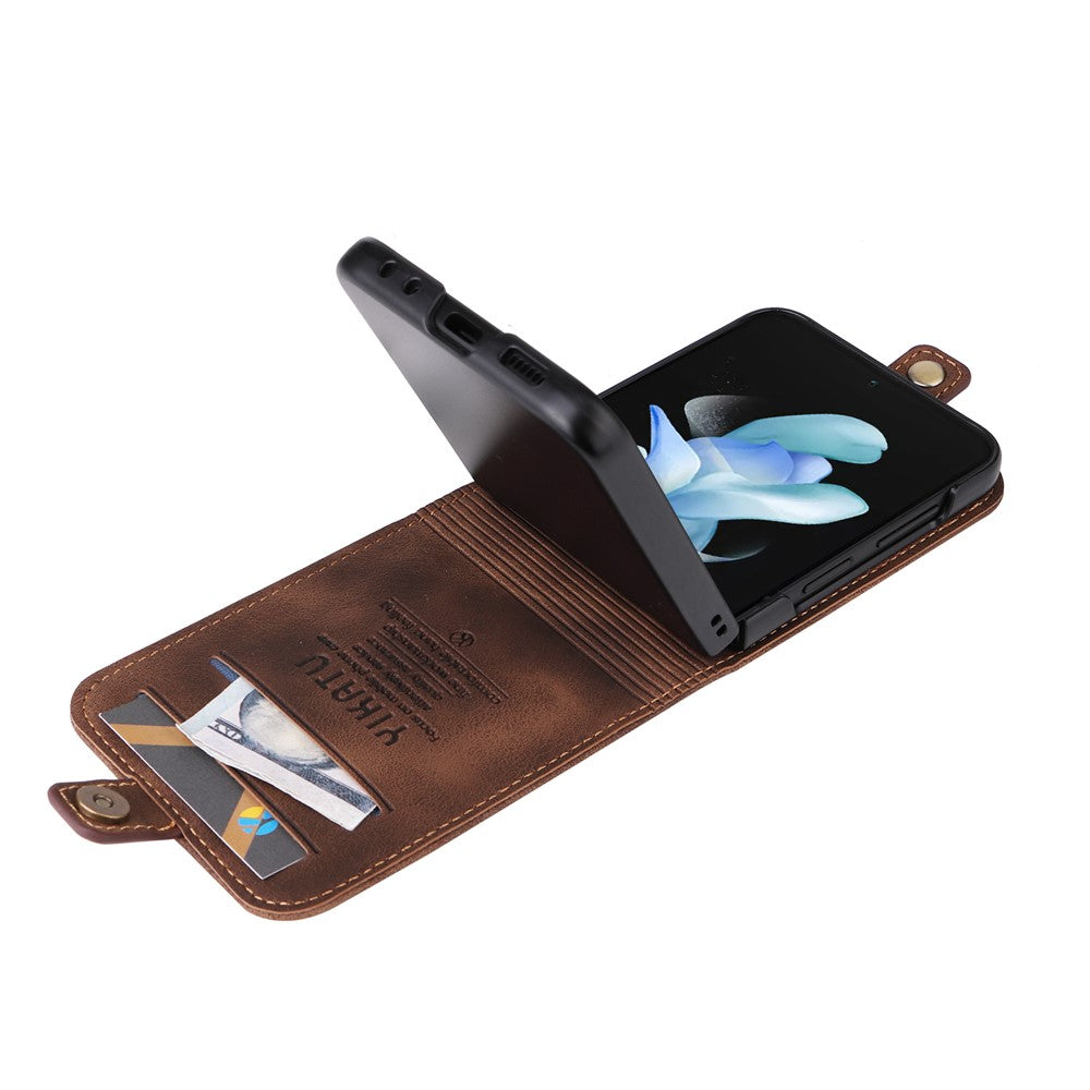 YIKATU YK-002 For Samsung Galaxy Z Flip7 FE 5G / Z Flip6 5G Case PU Leather Card Holder Phone Cover - Brown