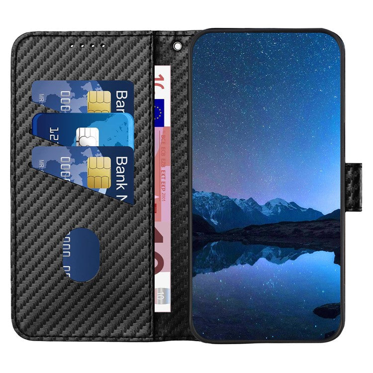 YX0070 For Samsung Galaxy M55 5G / C55 5G / F55 5G Wallet Case Carbon Fiber Texture Leather Phone Cover - Black