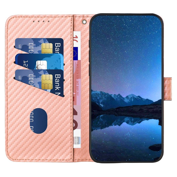 YX0070 For Samsung Galaxy M55 5G / C55 5G / F55 5G Wallet Case Carbon Fiber Texture Leather Phone Cover - Pink