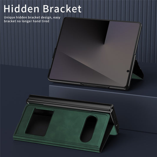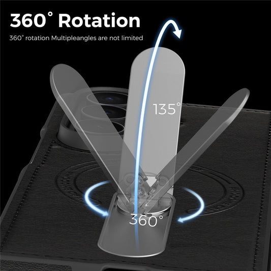 For Samsung Galaxy Z Fold7 5G Magnetic Case Rotating Kickstand Leather Coated PC Phone Cover - Black