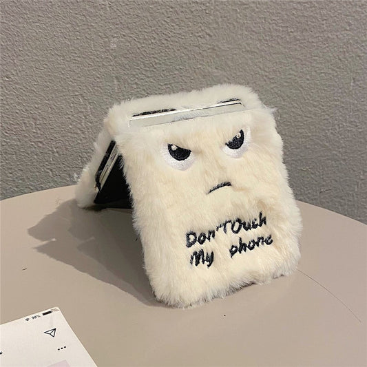 Acrylic Folding Phone Case for Samsung Galaxy Z Flip7 FE 5G / Z Flip6 5G Fluffy Cows Ear Cover - Red