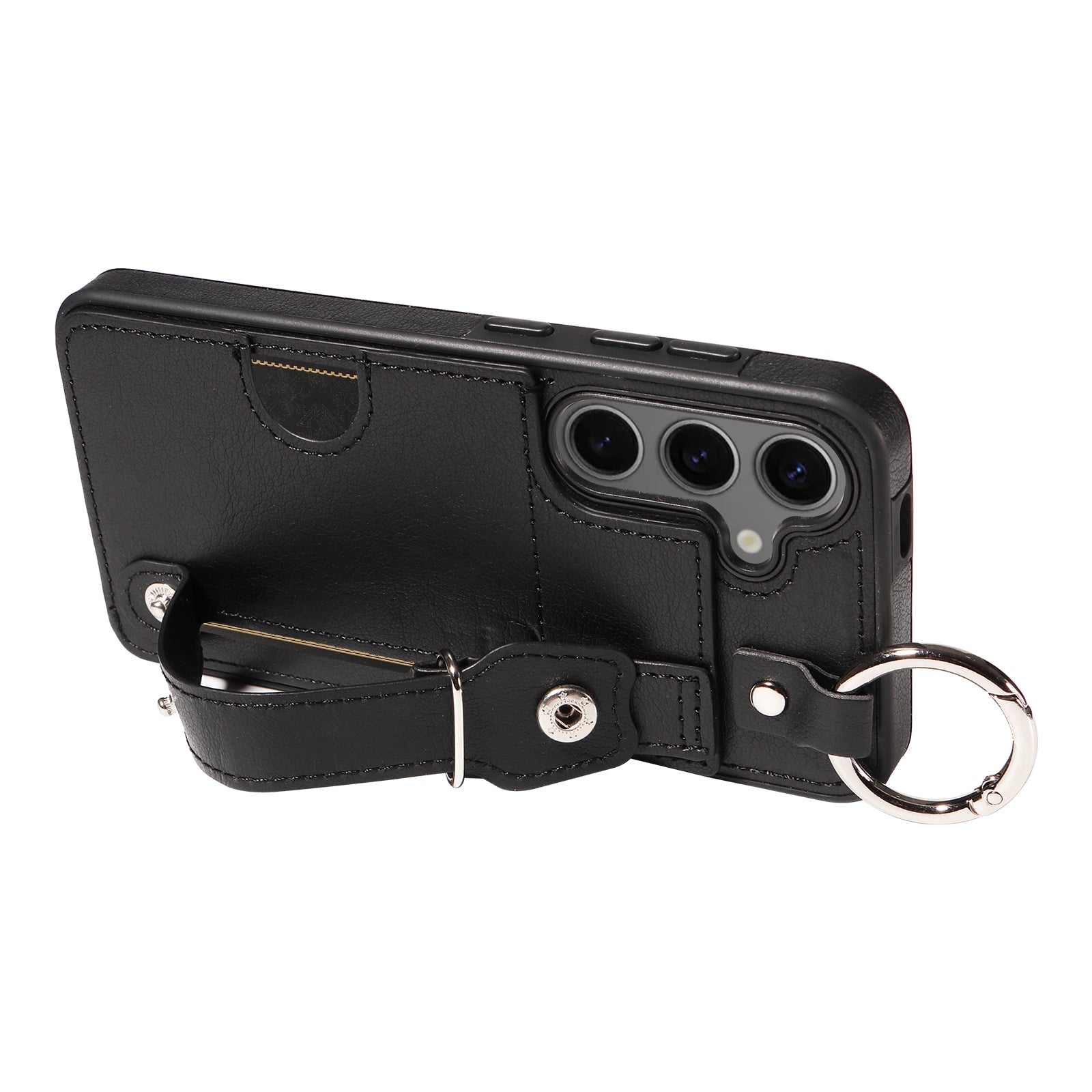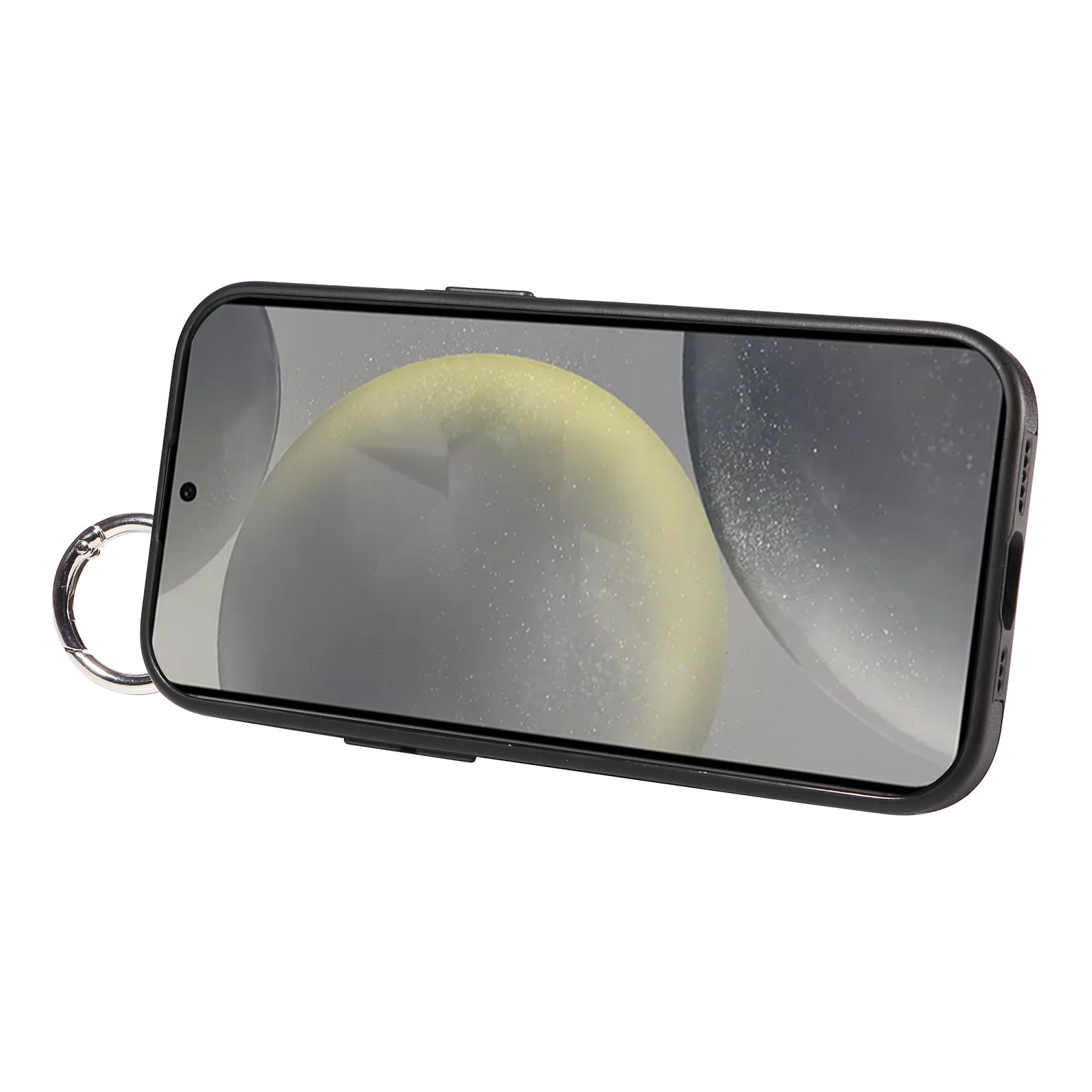 008 For Samsung Galaxy S24 Case Leather Coated TPU Shockproof Phone Cover with Kickstand - Black