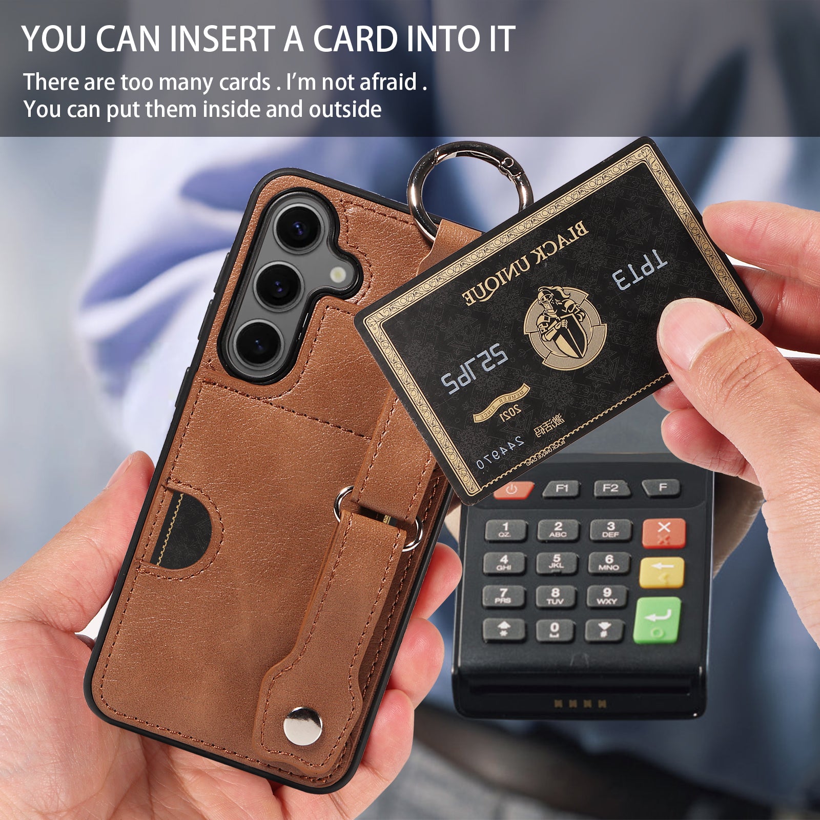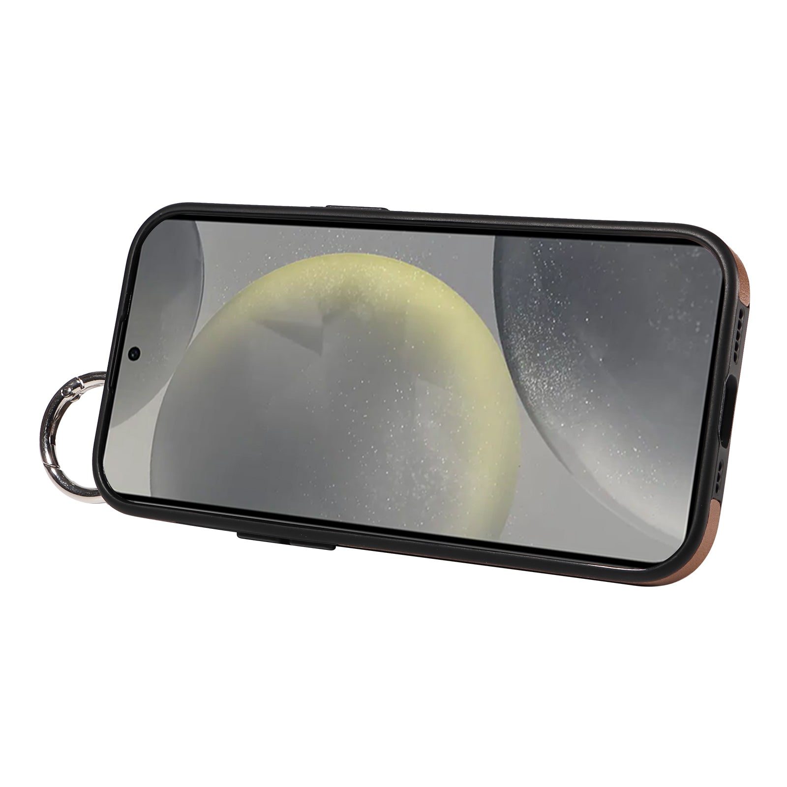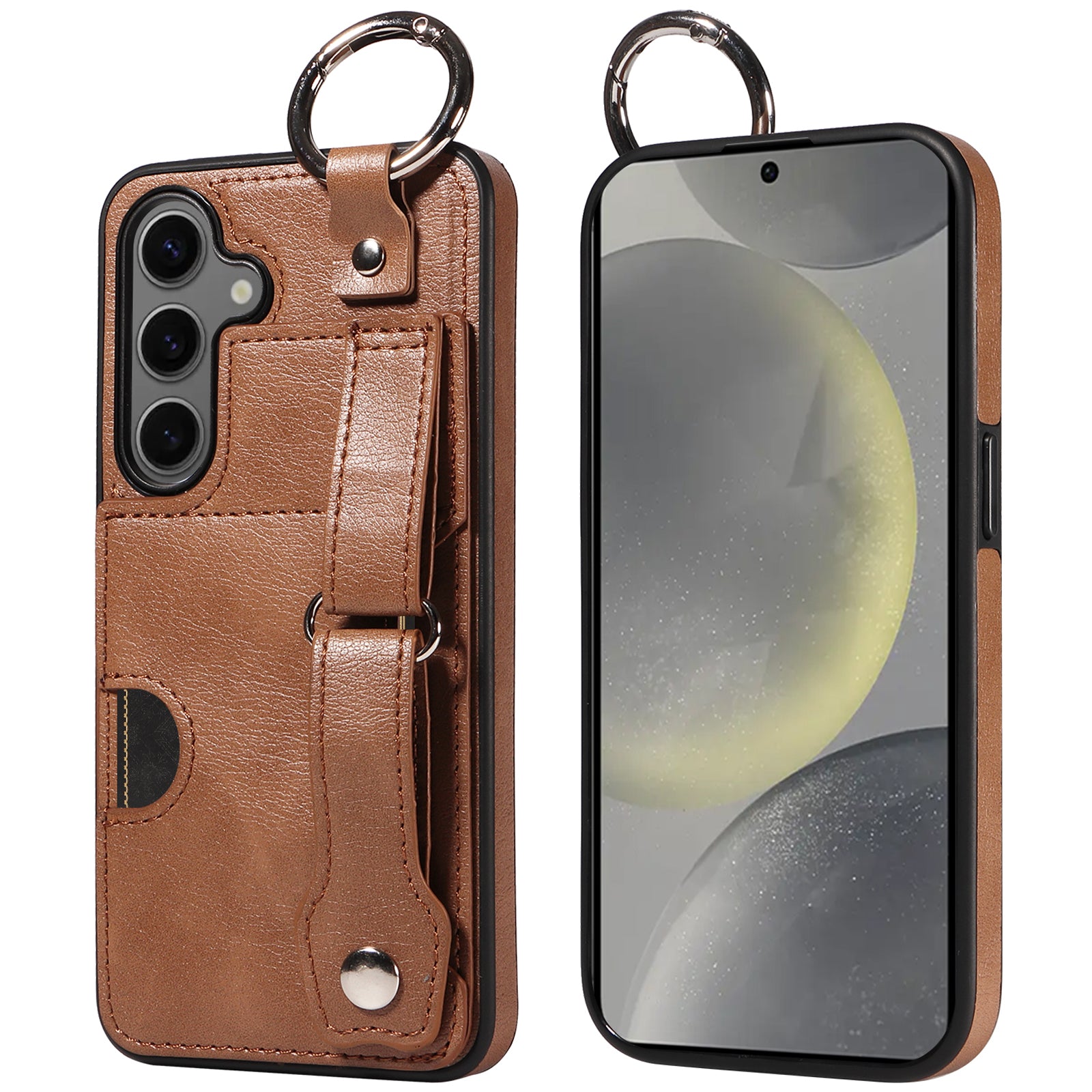 008 For Samsung Galaxy S24 Case Leather Coated TPU Shockproof Phone Cover with Kickstand - Brown