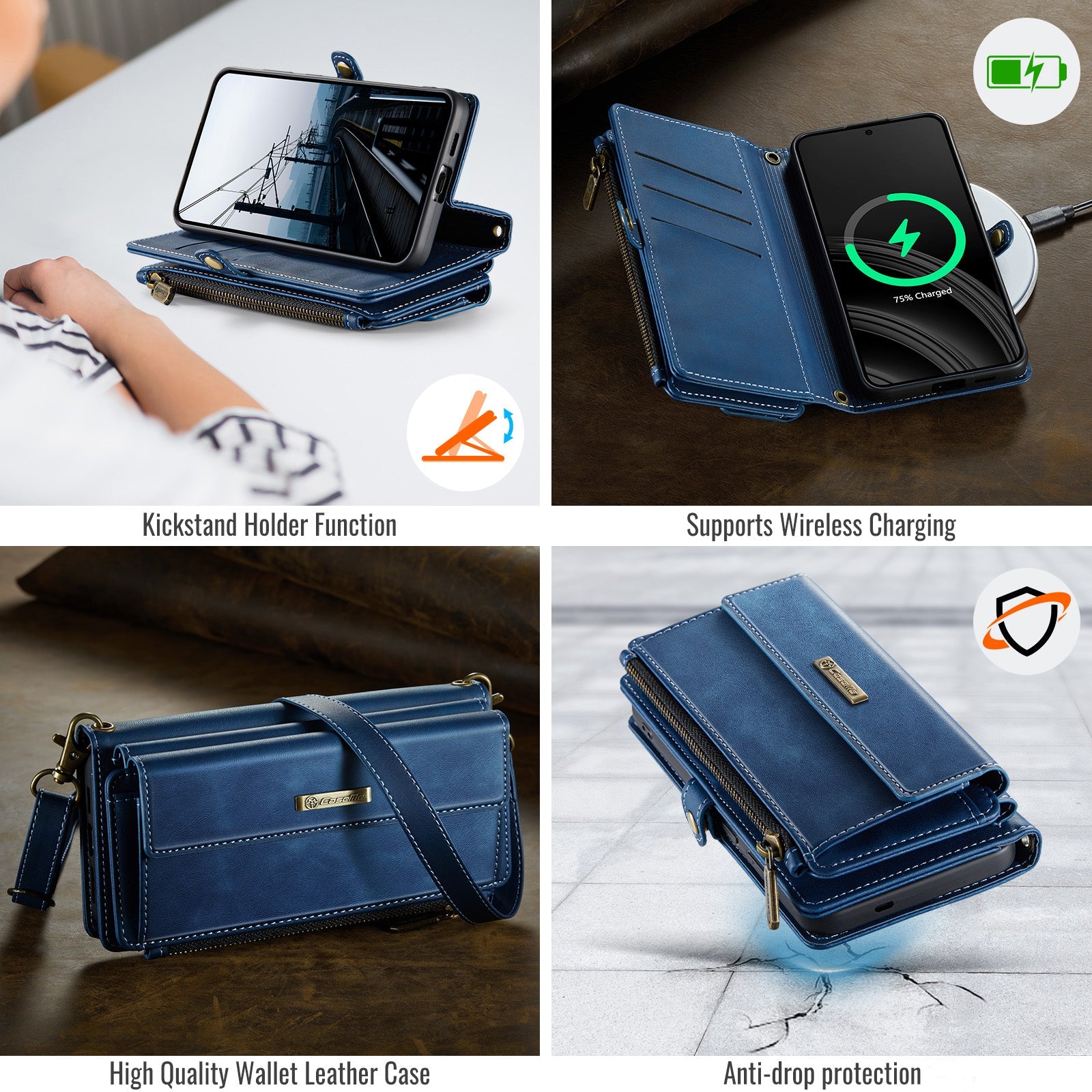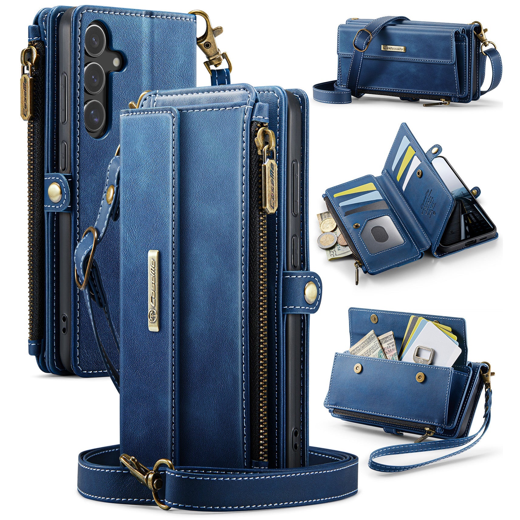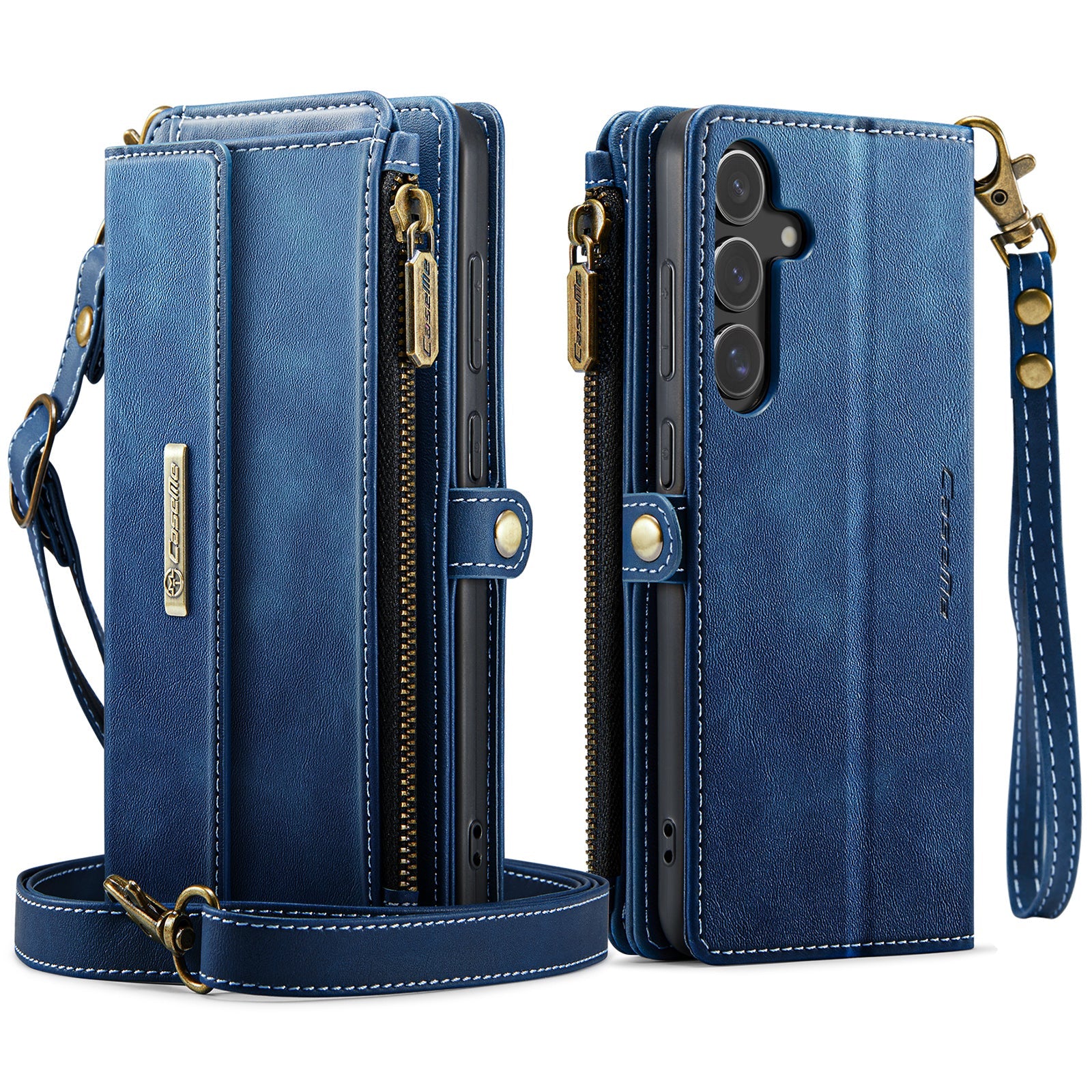 For Samsung Galaxy S24 Case CASEME C39 RFID Blocking Zipper Wallet Stand Leather Cover with Strap - Blue