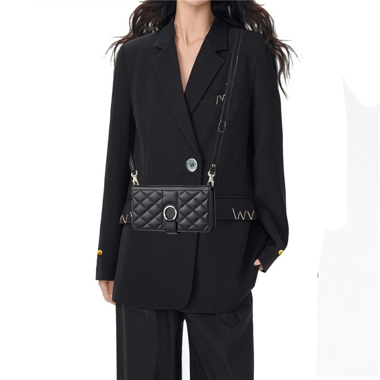 For Samsung Galaxy S24 Crossbody Leather Case Ring Buckle Wallet Stand Rhombus Mobile Cover - Black