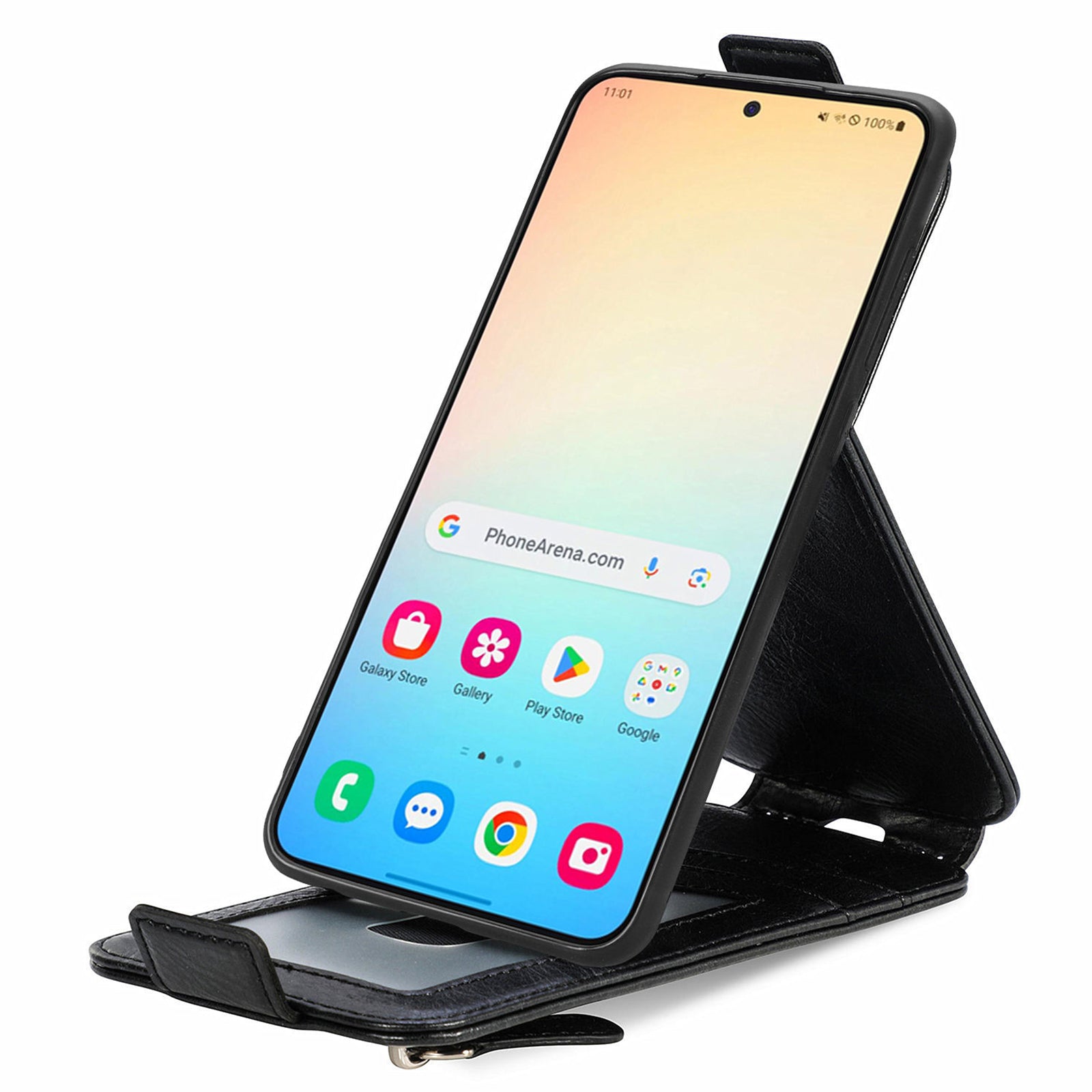 - Vertical-flip type leather case, opens down for easy operation with one hand
